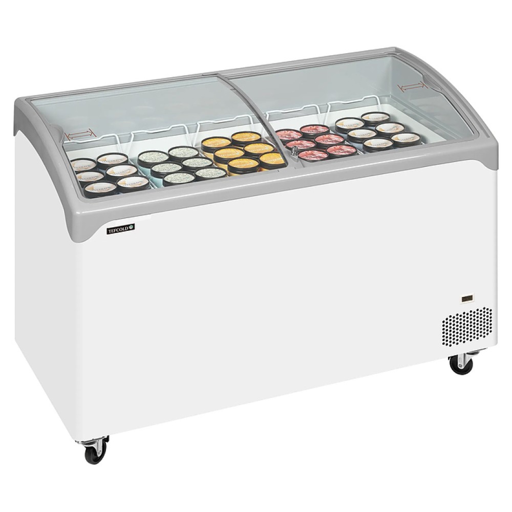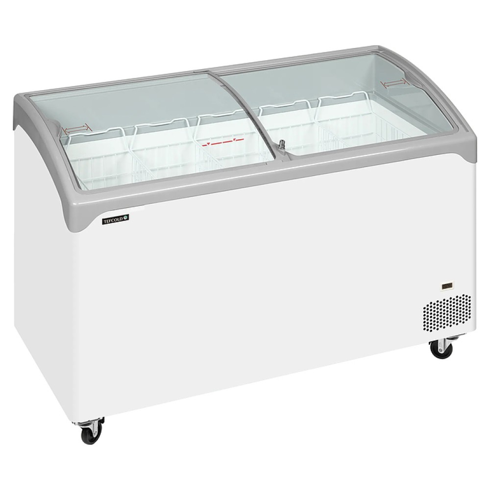 Морозильный ларь TEFCOLD NIC401SCEB предназначен для заморозки и длительного хранения продуктов и полуфабрикатов на предприятиях общественного питания и торговли. Модель оснащена 2 гнутыми раздвижными стеклянными крышками, 5 корзинами-сетками, замком, механическим контроллером, термометром, 4 колесами, 2 из которых снабжены стопорами. Внутренняя обшивка выполнена из оцинкованной стали, окрашенной белой порошковой краской.
