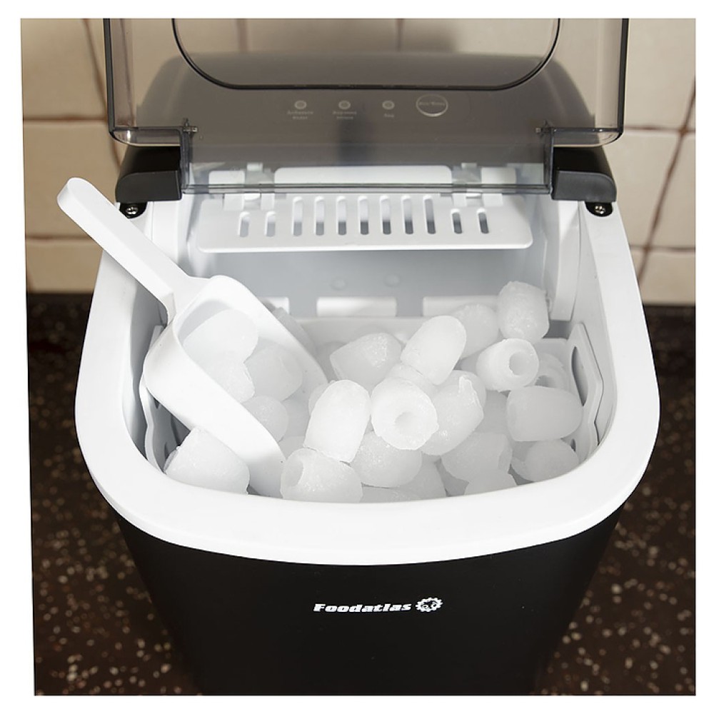Льдогенератор Foodatlas IM-12 предназначен для приготовления пальчикового льда, который используется для охлаждения различных напитков на предприятиях общественного питания и торговли. Модель оснащена панелью управления со световыми индикаторами и прозрачной крышкой. Корпус выполнен из ABS пластика с теплоизоляцией из пенополиуретана, внутренние панели - из полипропилена.