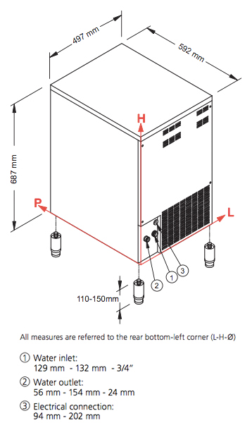 Льдогенератор NTF SL 70 A используется в барах, гостиницах, ресторанах, кафе и на производствах для приготовления льда гурме, который применяется для охлаждения прохладительных напитков и емкостей с жидкостями. Форма кубика подходит для стаканов любой формы. Для монтажа льдогенератора необходимы подводка (вентиль 3/4″) и отвод холодной воды (сток Ø 24 мм). Корпус изготовлен из нержавеющей стали AISI 304 с отделкой Scotch Brite, ножки - из нержавеющей стали.