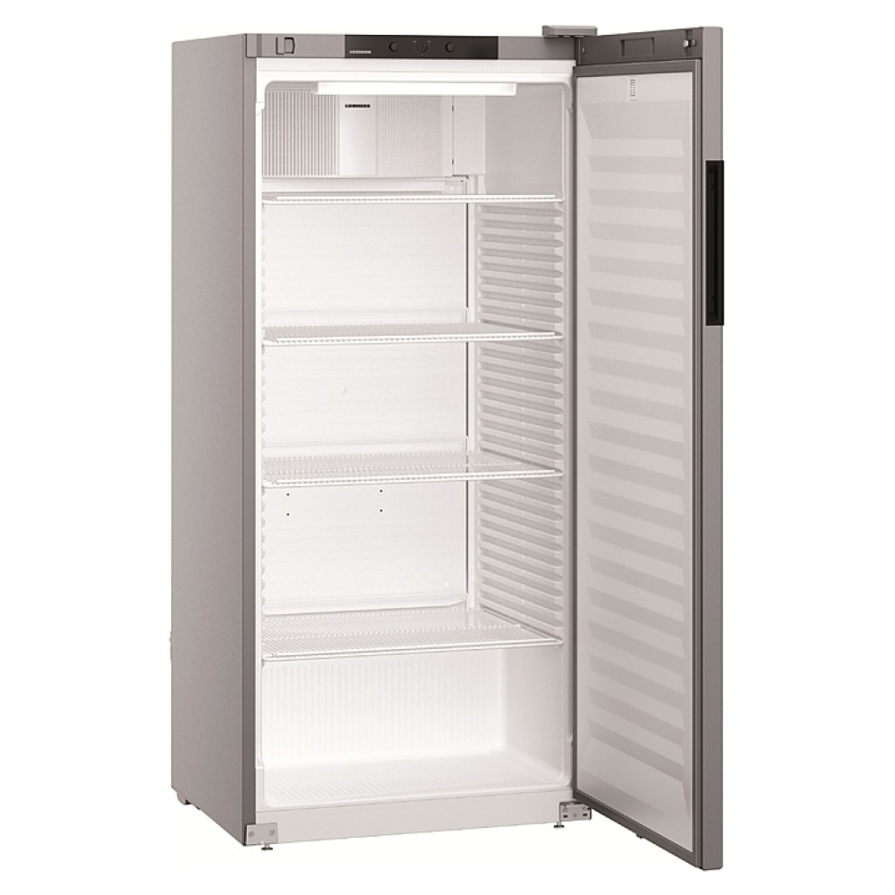 Холодильный шкаф Liebherr MRFvd 5501 класса Performance предназначен для охлаждения и хранения напитков на предприятиях общественного питания и торговли. Модель оснащена механическим управлением с поворотным регулятором, цифровым дисплеем, на котором выводится температура с точностью до 1 градуса, встроенной боковой ручкой, регулируемыми решетчатыми полками, перенавешиваемой самозакрывающейся дверцью с петлями справа и механическим замком и регулируемыми ножками. Внутренняя прокладка выполнена из полистирола профессионального применения, корпус - из стали, покрытие решеток - из пластика, ножки - из оцинкованной стали.