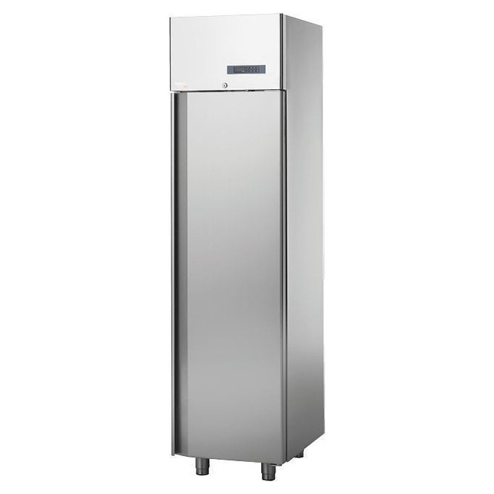 Холодильный шкаф Apach LCRM50S серии Chef Line предназначен для охлаждения и кратковременного хранения продуктов, полуфабрикатов и напитков на предприятиях общественного питания и торговли. Модель оснащена самозакрывающейся дверью с магнитным уплотнителем и возможностью перенавешивания, внутренней подсветкой, регулируемыми ножками и замком. Корпус, внутренняя камера, съемная крышка испарителя выполнены из нержавеющей стали AISI 304, дверная ручка - из ПВХ, отделка задней стенки - из оцинкованной стали.