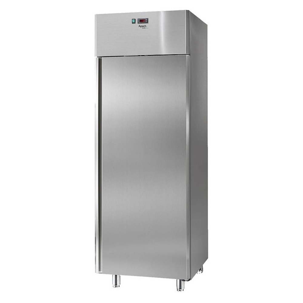 Холодильный шкаф Apach F700TN/290 DOM PLUS предназначен для охлаждения и кратковременного хранения продуктов, полуфабрикатов и напитков на предприятиях общественного питания и торговли. Модель оснащенаэлектронной панелью управления с 1 термистором NTC, самозакрывающейся дверцей с магнитным уплотнителем и регулируемыми по высоте ножками. Корпус и камера выполнены из нержавеющей стали, верхняя и задняя панели - из оцинкованной стали, теплоизоляция - из полиуретана, впрыскиваемого под высоким давлением, без использования опасных ХФУ.