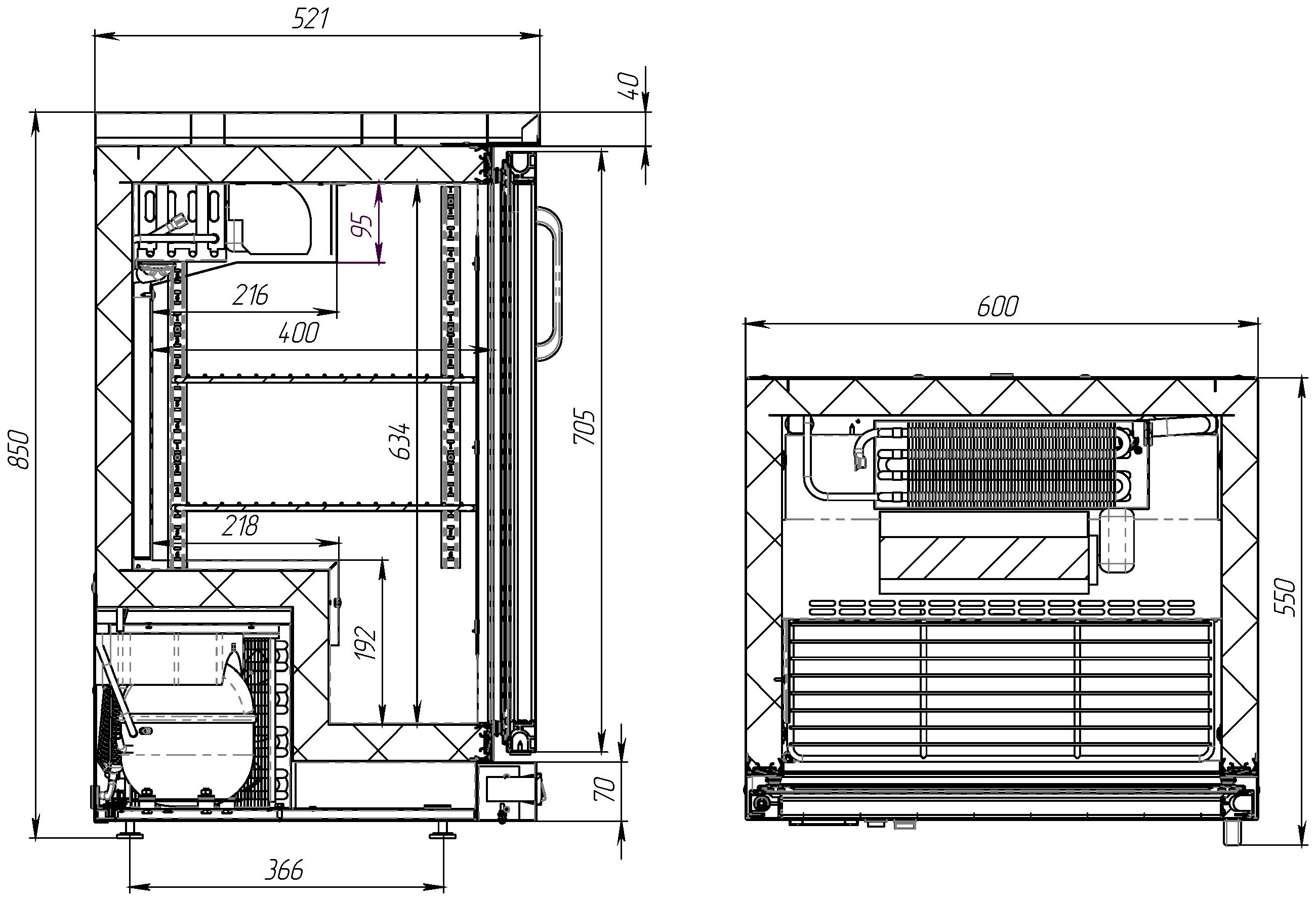 | Высота850 мм | Глубина520 мм | Ширина600 мм |
