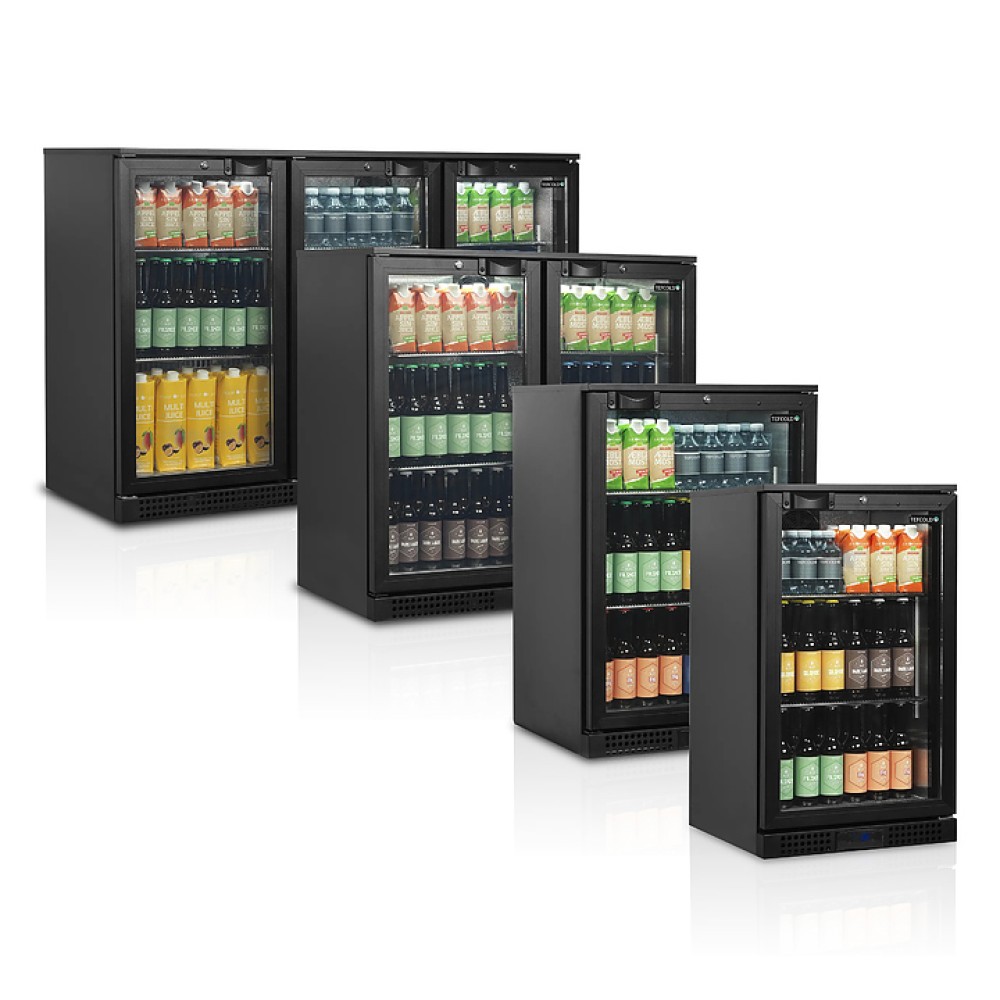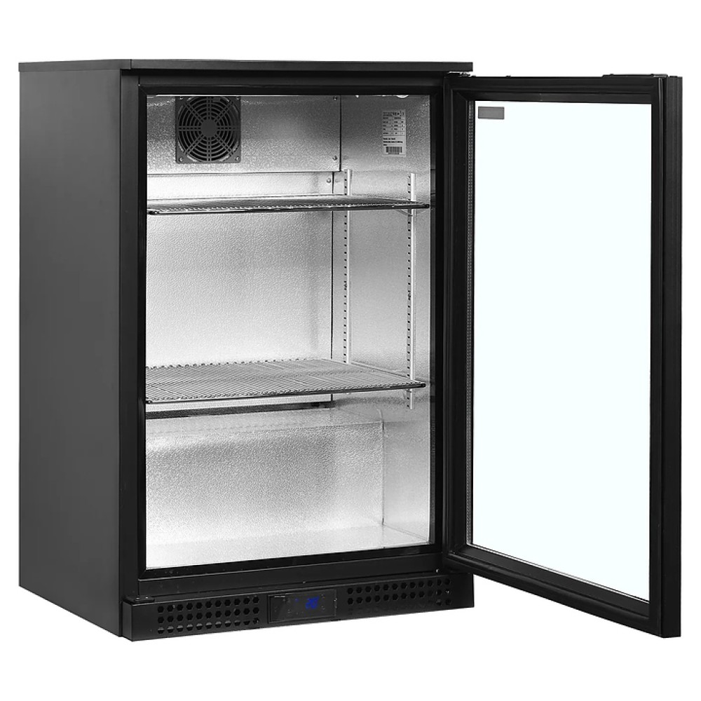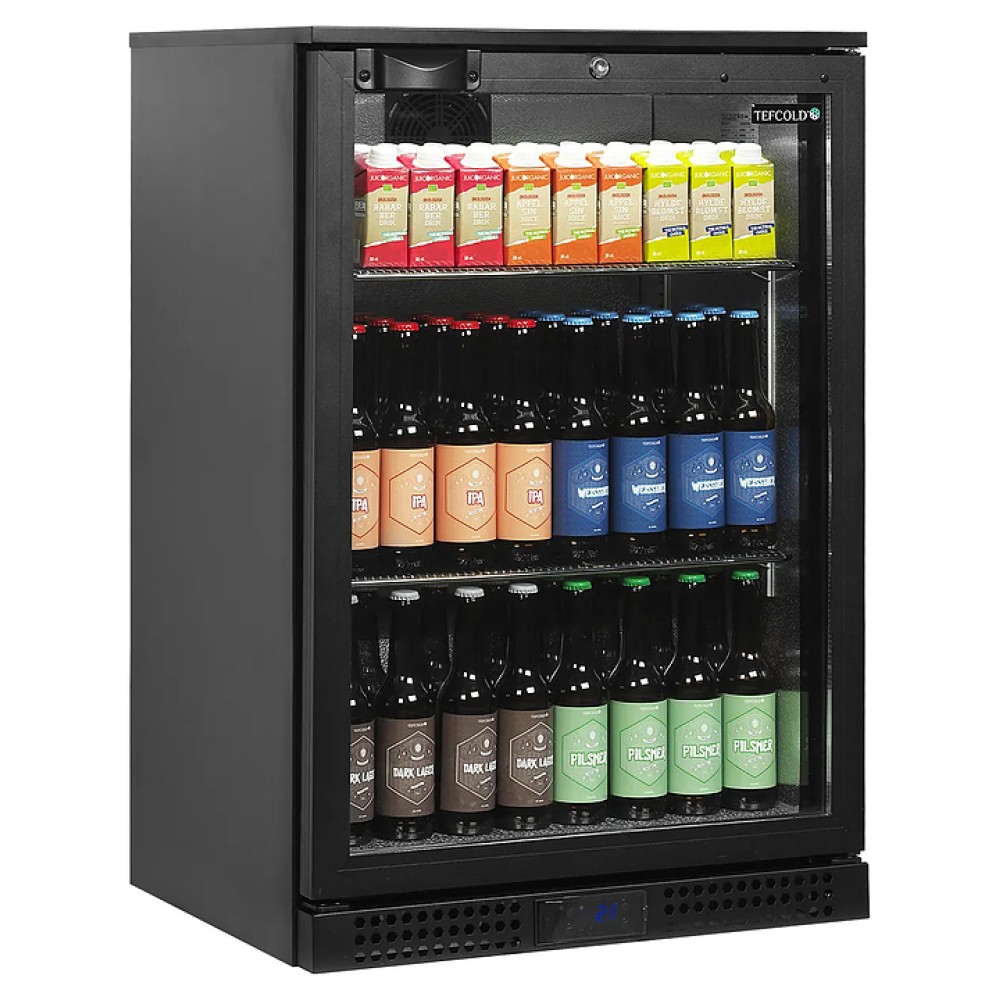 Барный холодильный шкаф TEFCOLD BA11H предназначен для использования в барах, кафе, ресторанах для охлаждения и хранения различных напитков. Модель оснащена распашной стеклянной перенавешиваемой дверью, 2 регулируемыми хромированными полками, термометром, электронным блоком управления, LED-подсветкой, замком и 4 регулируемыми ножками. Размер и расположение полок предполагает использование банок объёмом 330 и 500 мл. Изделие имеет внутреннюю отделку из рифленого алюминия.