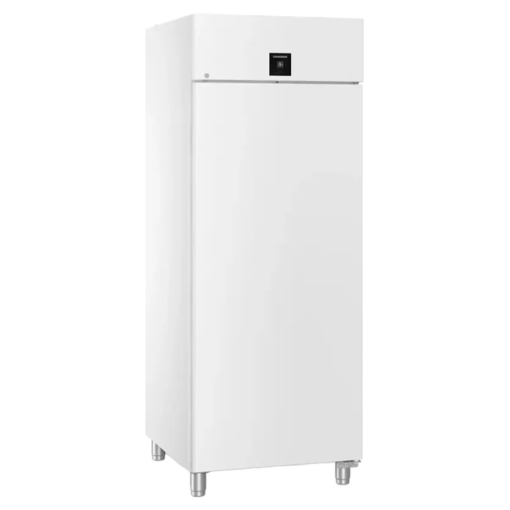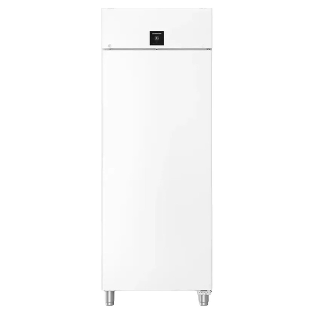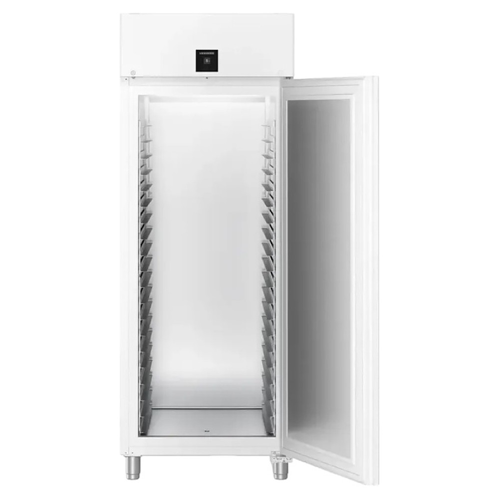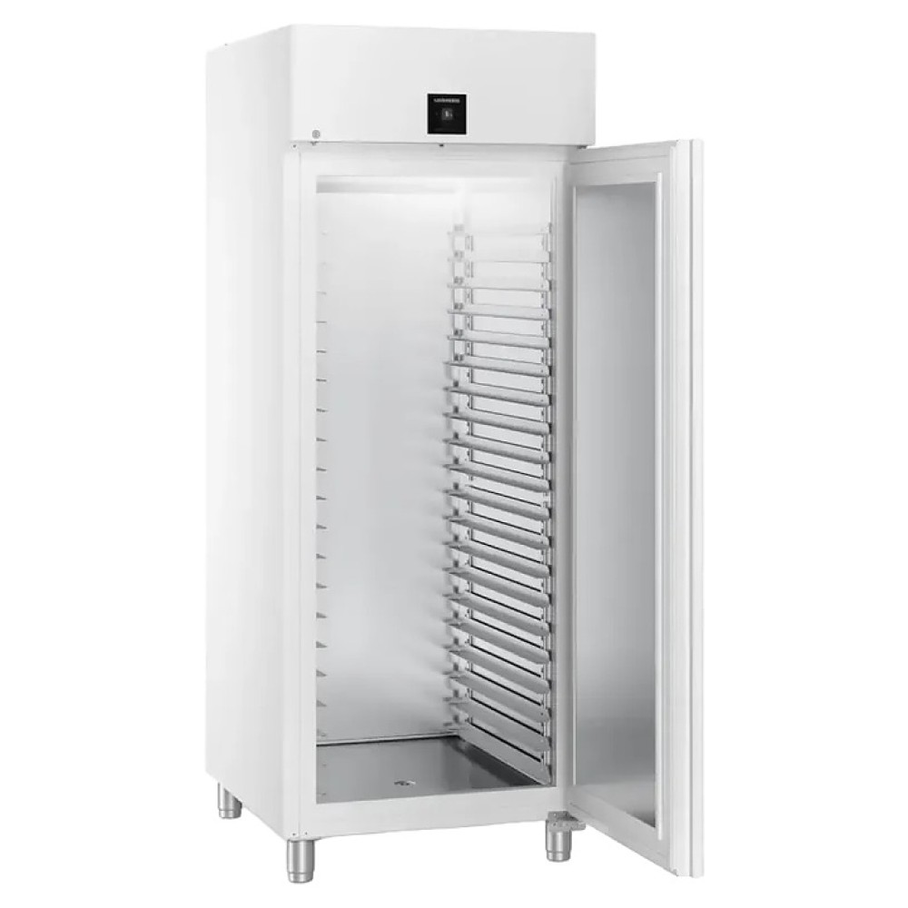 Холодильный шкаф Liebherr BRPvg 8401 серии Performance предназначен для охлаждения и хранения заготовок из теста в пекарнях и аналогичных предприятиях пищевой промышленности. Модель оснащена холодильной камерой c боковыми стойками с 20 уровнями L-образных направляющих для размещения противней, правосторонней глухой распашной дверью, 4 массивными цилиндрическими опорами, кабелем питания с вилкой и расположенной в верхней части фасада сенсорной панелью управления с дисплеем индикации. Фасад двери и боковины выполнены из стали с лакированным антикоррозийным покрытием белого цвета, внутренняя облицовка камеры, направляющие и опоры выполнены из хромникелевой нержавеющей стали марки AISI 304 с серебристой поверхностью, упаковка – из гофрокартона, полимерной пленки и полистирола.