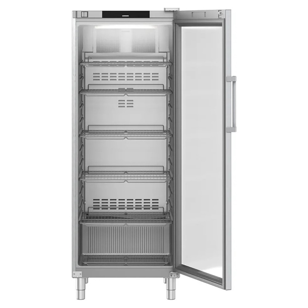 Холодильный шкаф Liebherr FRFCvg 6511 серии Perfection предназначен для охлаждения, хранения и предпродажной демонстрации пищевых продуктов и напитков на предприятиях общественного питания и торговли. Модель оснащена холодильной камерой c правосторонней распашной дверью с прозрачным обзорным остеклением и короткой вертикальной рукояткой, кабелем питания с вилкой, 4 массивными цилиндрическими опорами, расположенными в верхней части фронта за дверью и на фасаде двери сенсорными панелями управления с дисплеями индикации. Боковины и опоры выполнены из нержавеющей стали с серебристой поверхностью, внутренняя облицовка камеры – из пластика с серебристой поверхностью, рама двери и рукоятка – из алюминия с серебристой поверхностью, полки – из металла с полимерным покрытием, упаковка – из гофрокартона, полимерной пленки и полистирола.