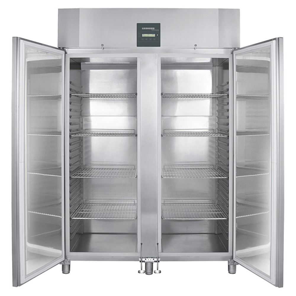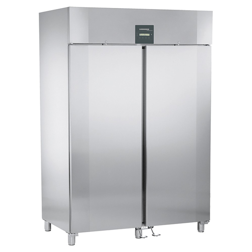 Холодильный шкаф Liebherr GKPv 1490 серии ProfiPremiumline предназначен для охлаждения и кратковременного хранения скоропортящихся продуктов и напитков на предприятиях общественного питания и торговли. Модель оснащена электронным кнопочным управлением, цифровым дисплеем, на котором выводится температура с точностью до 1 градуса, встроенной эргономичной ручкой-профилем по всей высоте двери, 2 самозакрывающимися дверьми с механическим замком, ножными педалями для легкого открывания дверей и 5 регулируемыми ножками. Внутренняя камера и решетки выполнена из хромоникелевой стали 1.4301 / AISI 304, корпус - из цельной листовой нержавеющей стали без зазаров, ножки - из нержавеющей стали.