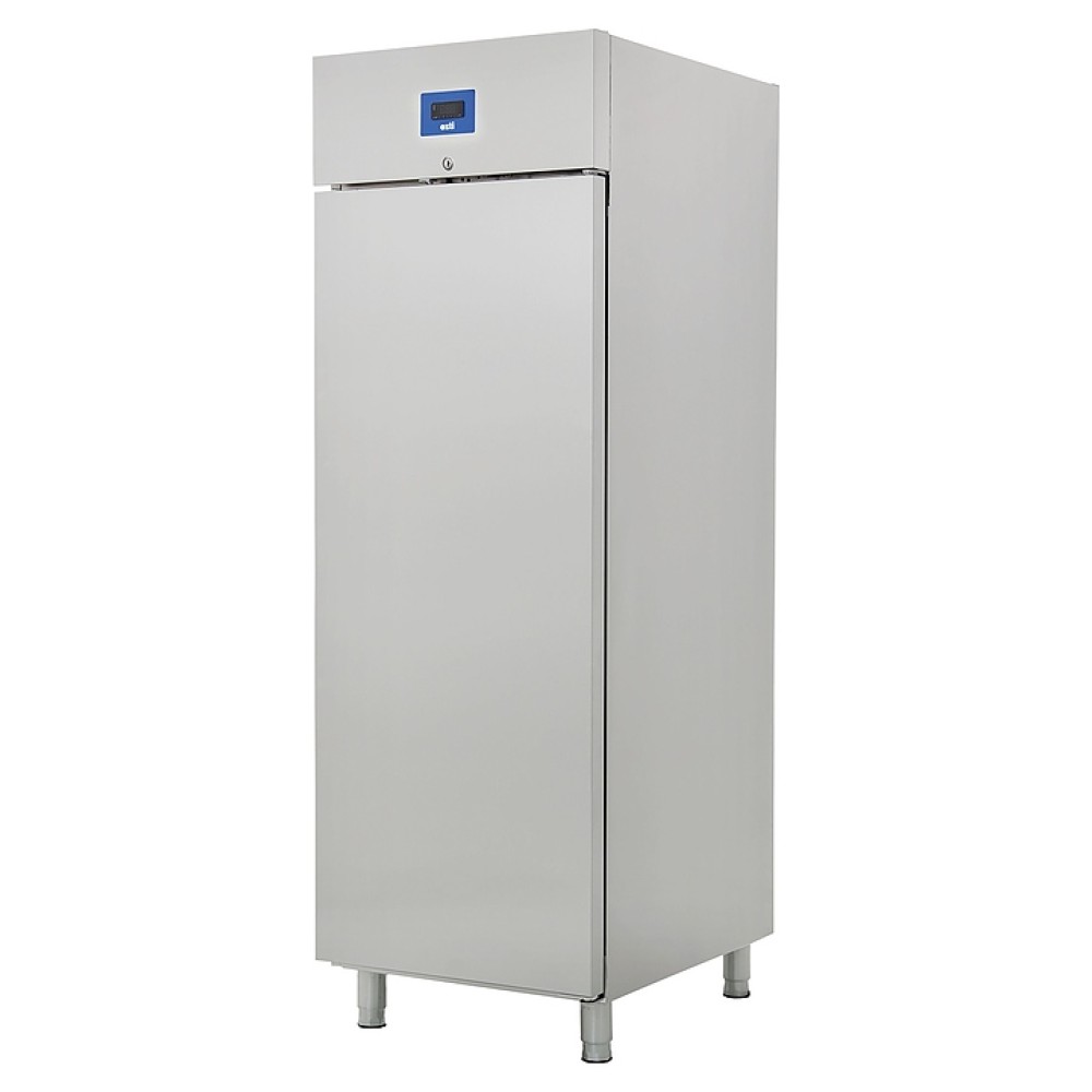 Холодильный шкаф OZTI GN 600.00 NMV K HC. K4 предназначен для охлаждения и кратковременного хранения различных пищевых продуктов и напитков на предприятиях пищевой промышленности, общественного питания и торговли. Модель оснащена встроенным холодильным агрегатом, холодильной камерой с глухой распашной дверью, интегрированными направляющими для установки гастроемкостей или полок и расположенной в верхней части фронта панелью управления с дисплеем. Внутренняя облицовка камеры и опоры выполнены из высококачественной нержавеющей стали, теплоизоляция – из экологически безопасного полиуретана высокой плотности.