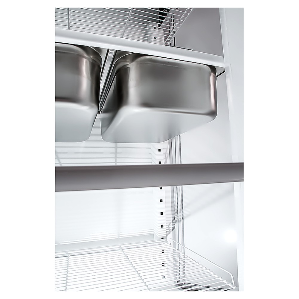 Холодильный шкаф POLAIR CM110-Sm (R290) Alu серии Standard-m предназначен для демонстрации и хранения продуктов на предприятиях общественного питания и торговли. Цельнозаливной корпус изготовлен из стали с полимерным покрытием, алюминиевыми профилями и обеспечивает механическую прочность и долговечность шкафа, алюминиевые профили дверей и верхней панели подчеркивают премиальный дизайн. Оборудование рассчитано на работу при температуре окружающей среды до 40 °С и относительной влажности воздуха до 80%.