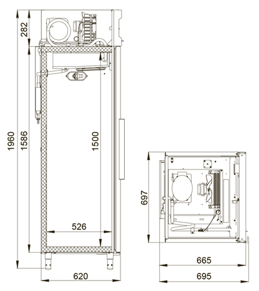 | Высота1960 мм | Глубина695 мм | Ширина697 мм |