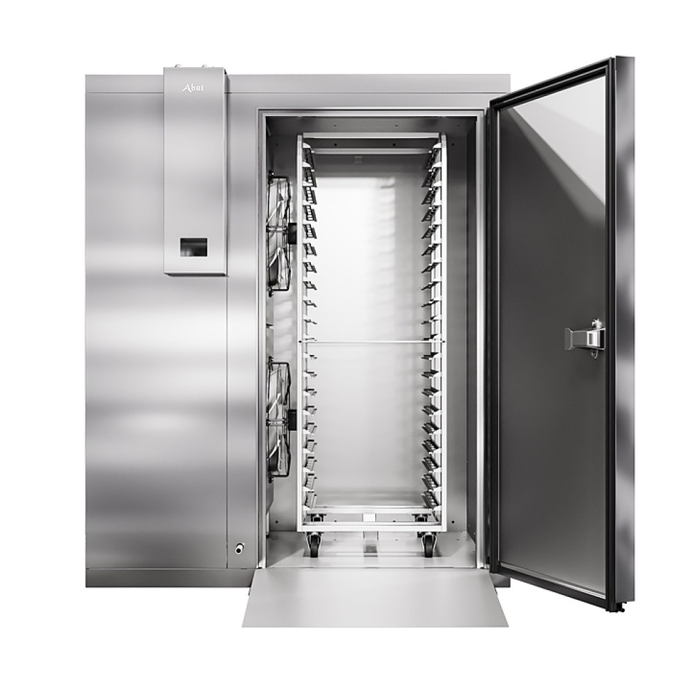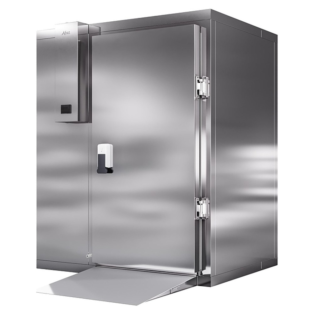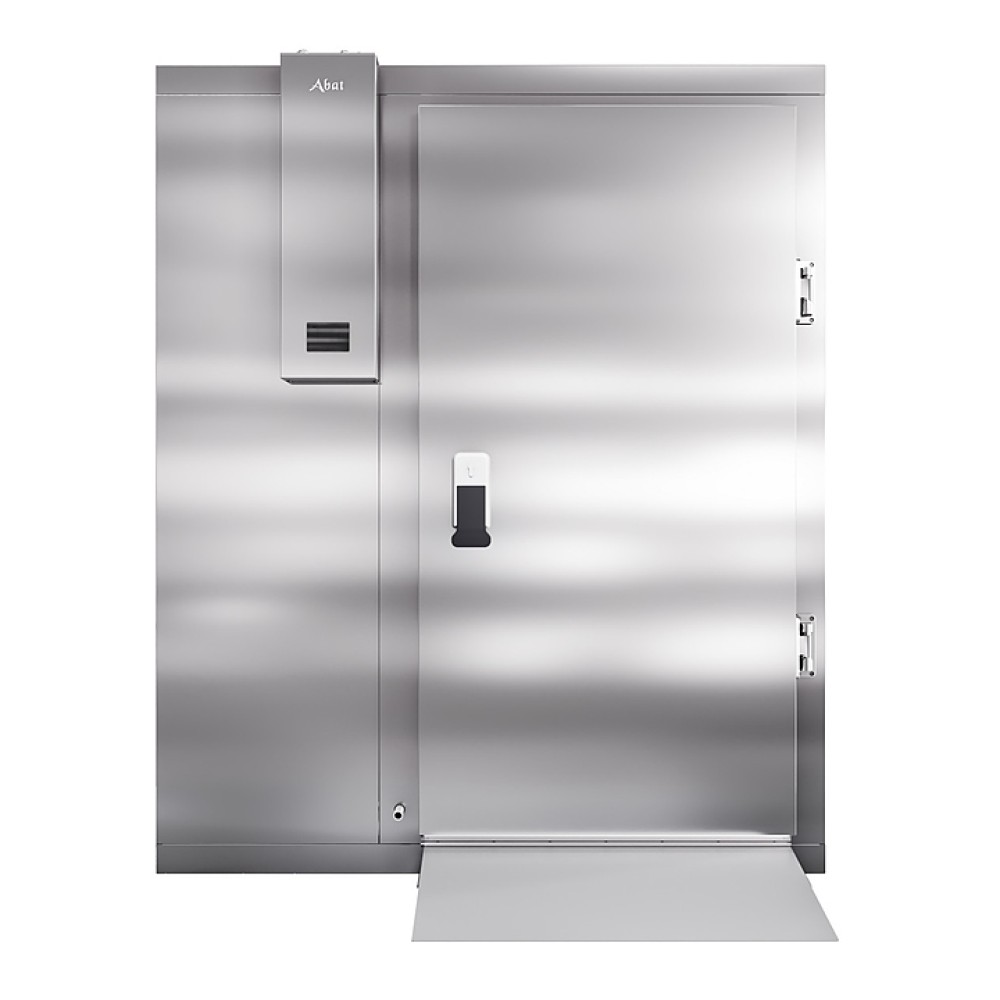 Камера шоковой заморозки Abat ШОКК-201 предназначена для быстрого охлаждения и замораживания различных пищевых продуктов и полуфабрикатов для дальнейшего их хранения на низкотемпературных складах предприятий общественного питания. Модель оснащена воздухоохладителем с 2 вентиляторами, навесной дверью с низкотемпературным уплотнителем, подогревом и двусторонним замком. Пандус и пол камеры выполнены из рифленого нержавеющего листа, стенки и потолок - сендвич-панели из высококачественной нержавеющей стали толщиной 80 мм.