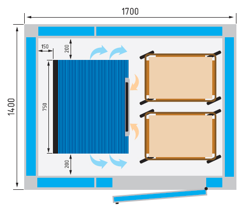 | Высота2240 мм | Глубина1400 мм | Ширина1700 мм |