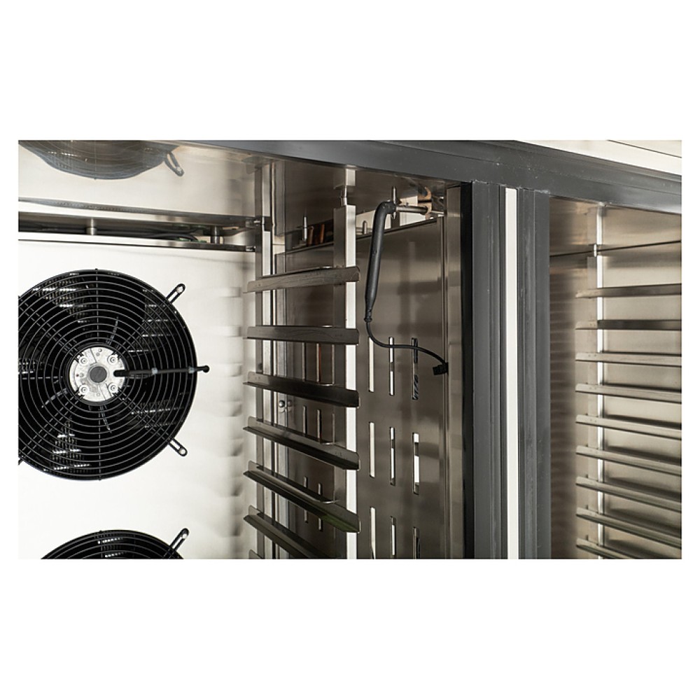 Шкаф шоковой заморозки Abat ШОК-40 используется на предприятиях общественного питания и торговли для быстрого охлаждения, заморозки и дальнейшего хранения большого объема продуктов питания с сохранением их первоначальных свойств. Модель оснащена холодильным агрегатом на основе компрессора Copeland (Emerson). Все поверхности, соприкасающиеся с продуктами питания, выполнены из аустенитной нержавеющей стали AISI 304.
