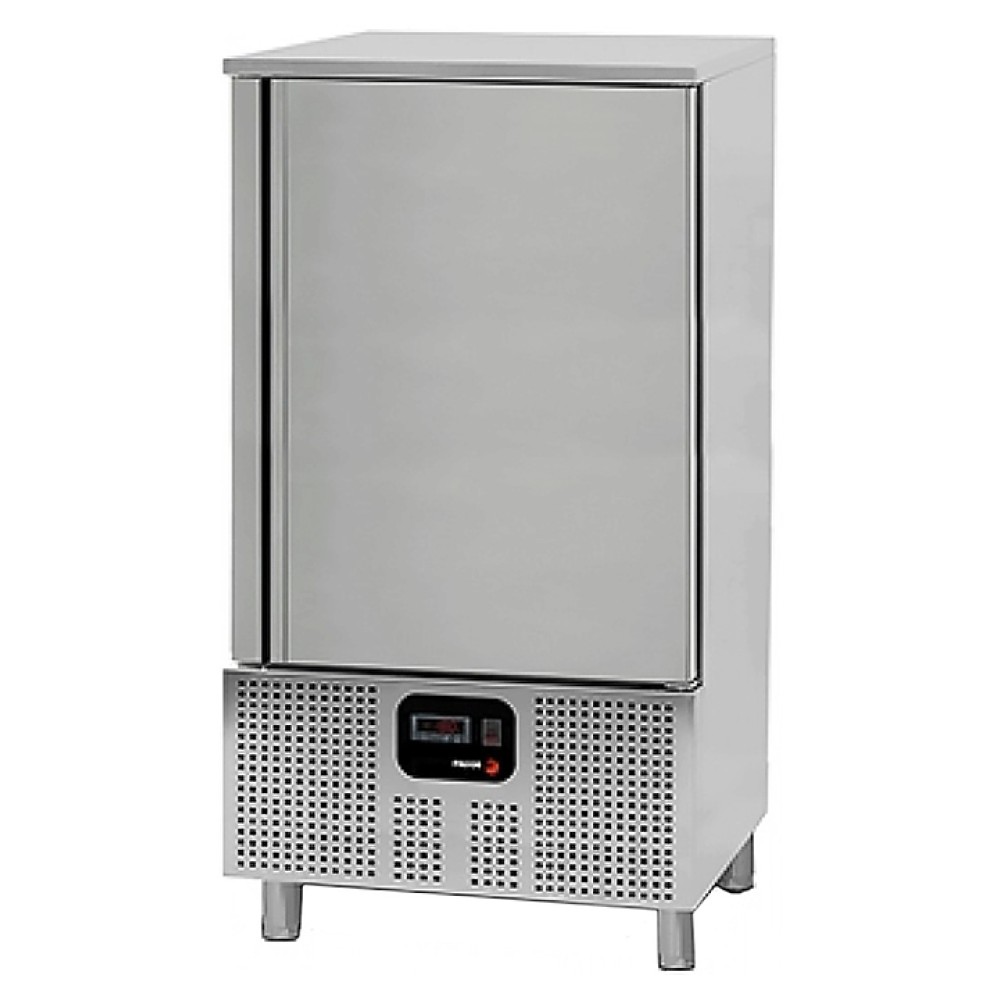 Шкаф шоковой заморозки Fagor ATM-101 ECO серии Concept используется на предприятиях общественного питания и торговли для быстрого охлаждения и заморозки различных продуктов, прошедших тепловую обработку, с сохранением их первоначальных свойств. Модель оснащена удобной сенсорной панелью управления, датчиком температуры и 2 вентиляторами. Корпус выполнен из сатинированной нержавеющей стали, задняя панель - из пластика, внутреннее покрытие и направляющие для лотков - из нержавеющей стали AISI 304.