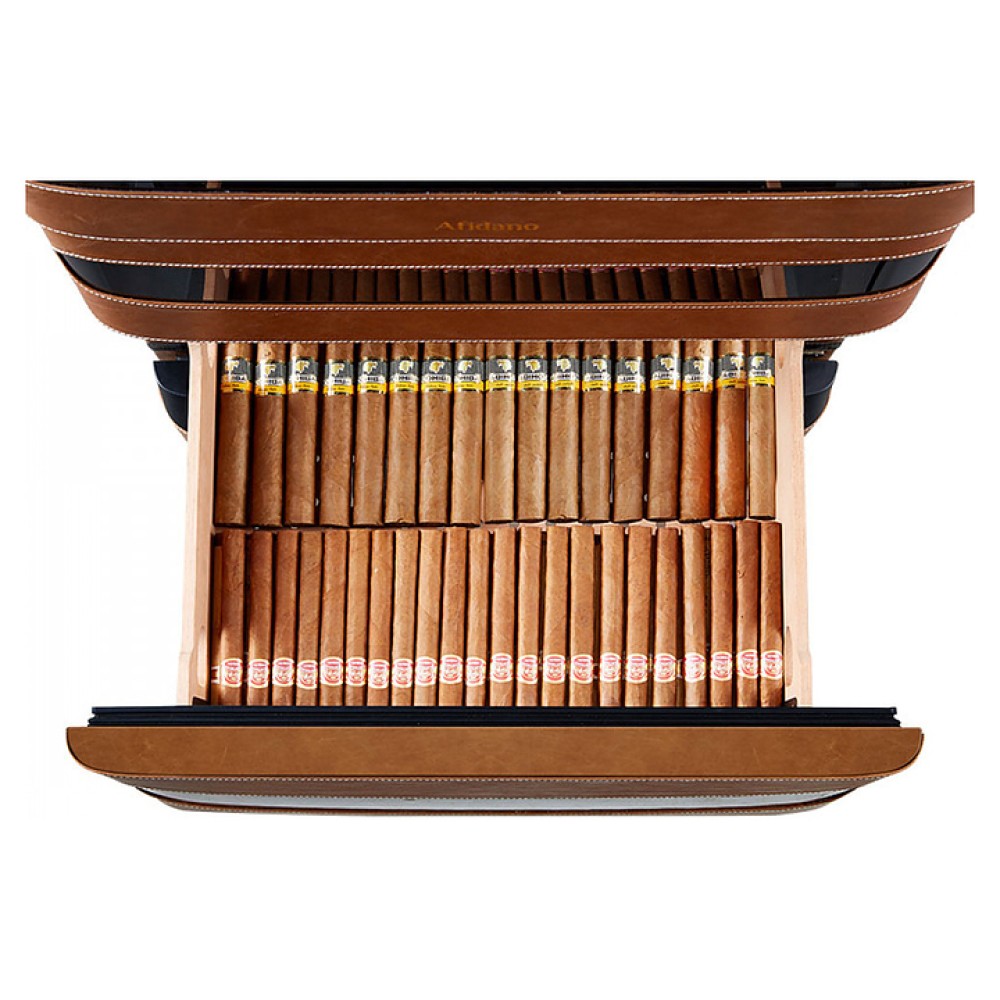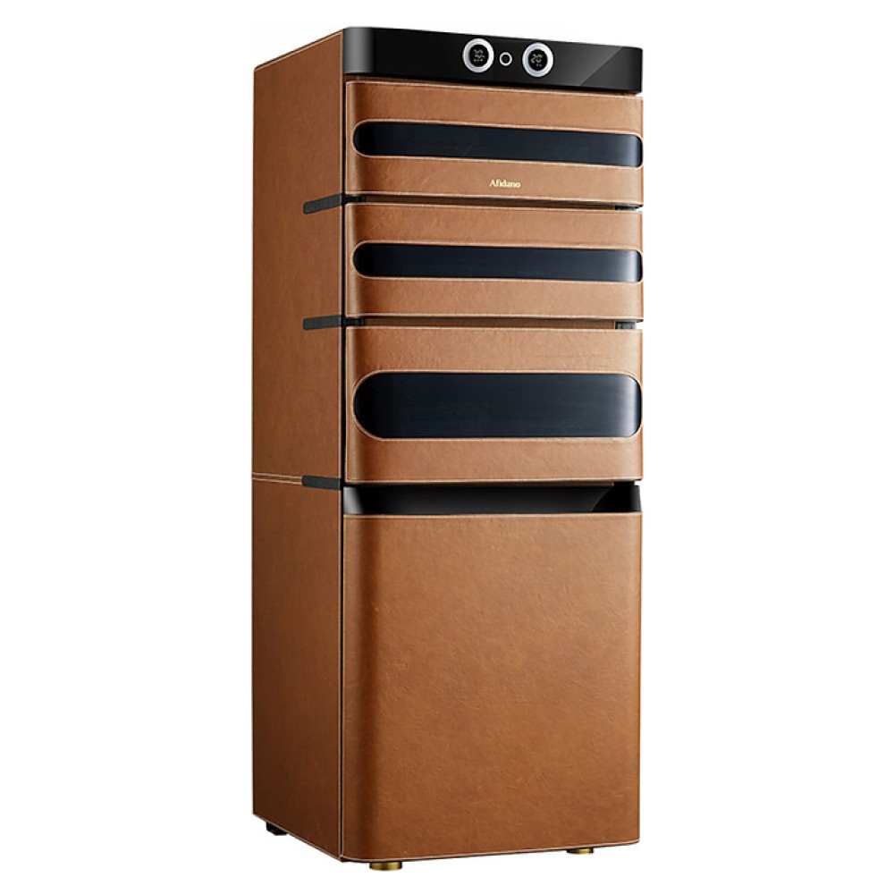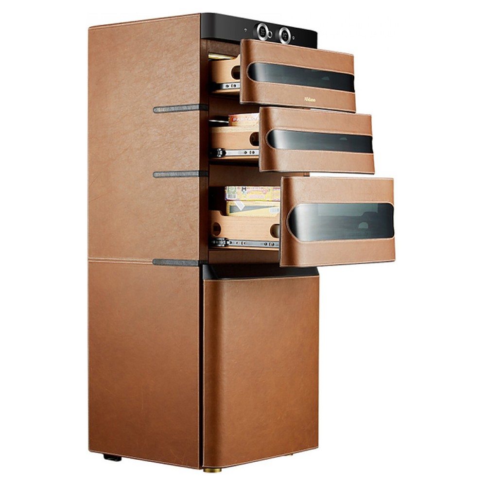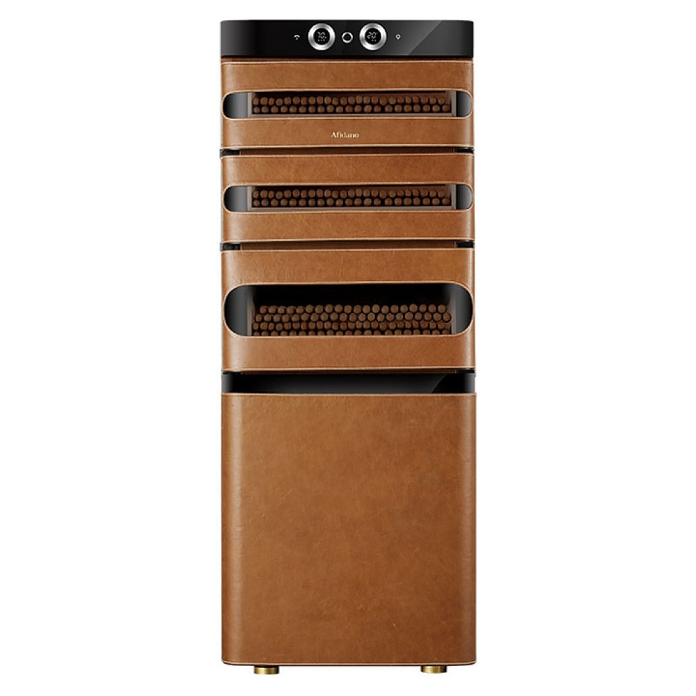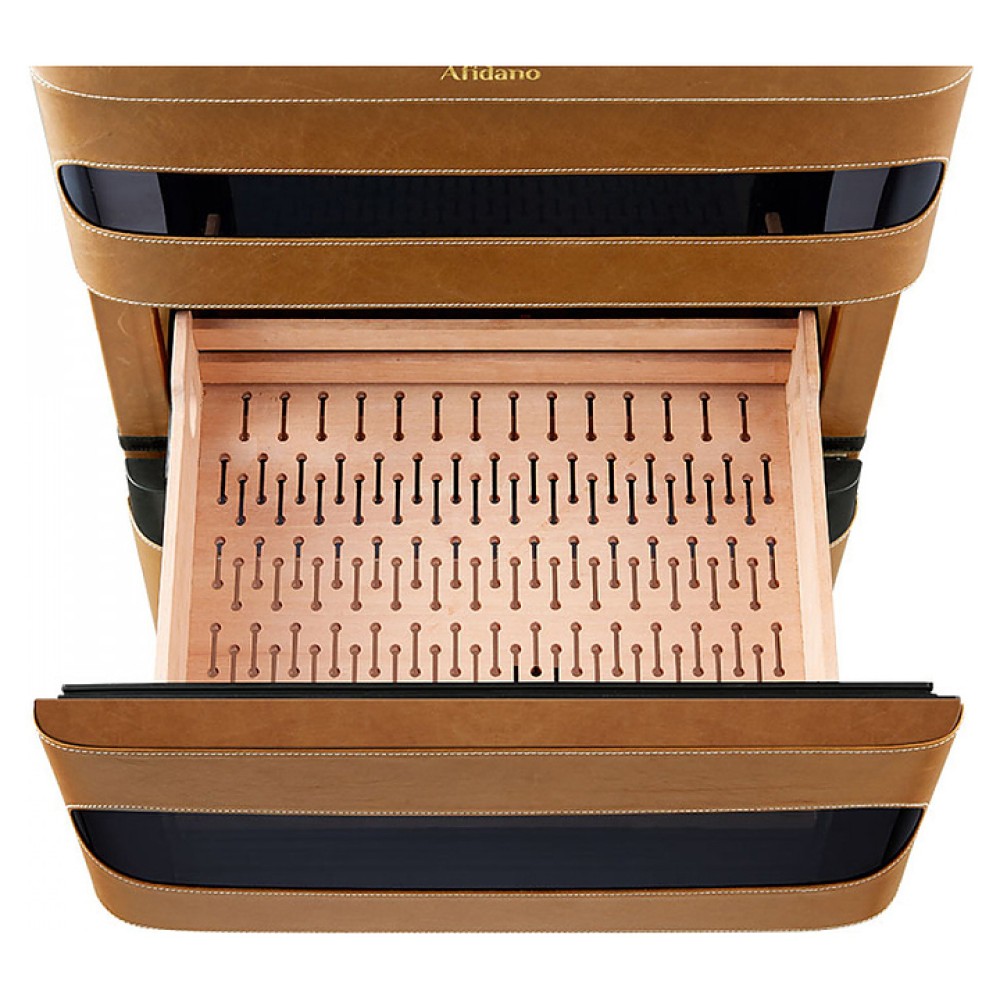 Шкаф Afidano L5 предназначен для хранения в оптимальных условиях и демонстрации сигар в специализированных магазинах, гостиницах, складских помещениях и домашних условиях. Модель оснащена 1 температурной зоной, открытием отпечатком пальца, сенсорной панелью управления, 5 выдвижными ящиками, утопленной ручкой, электронным термостатом и регулируемыми ножками. Цифровой гигрометр и внутренняя подсветка упрощают мониторинг и обзор содержимого. Корпус выполнен из стали, обшитой скульптурным полотном, внутренняя отделка и ящики - из испанского кедра.
