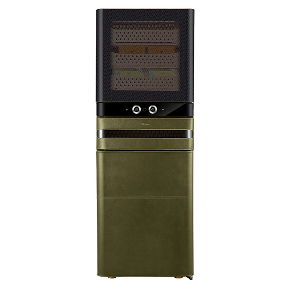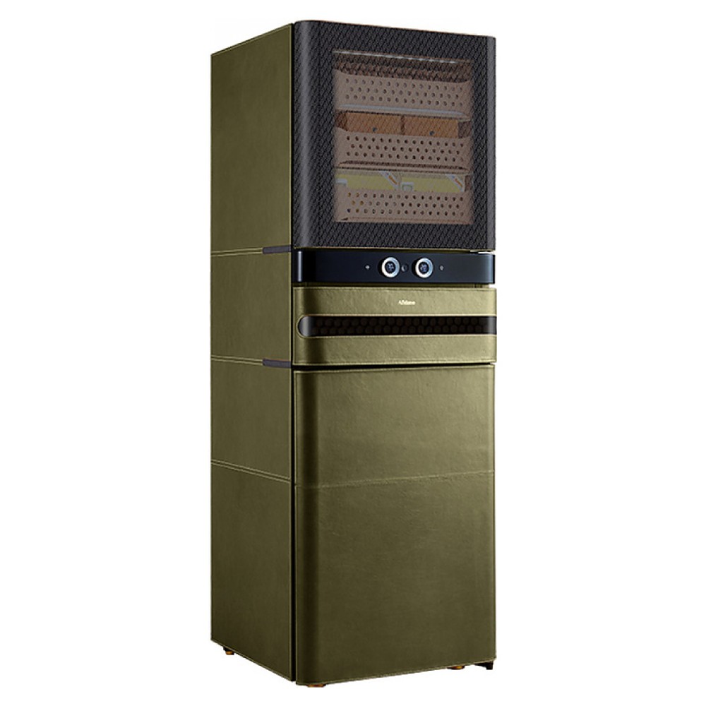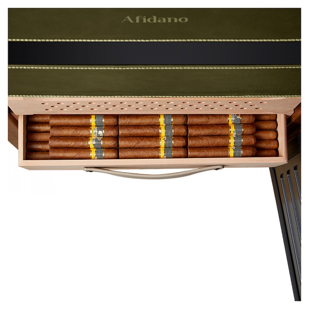 Шкаф Afidano L6 предназначен для хранения в оптимальных условиях и демонстрации сигар в специализированных магазинах, гостиницах, складских помещениях и домашних условиях. Модель оснащена 1 температурной зоной, 2 дверьми, 8 выдвижными ящиками, открытием отпечатком пальца, сенсорной панелью управления, утопленной ручкой, электронным термостатом и регулируемыми ножками. Цифровой гигрометр и внутренняя подсветка упрощают мониторинг и обзор содержимого. Корпус выполнен из стали, обшитой кожей, внутренняя отделка и ящики - из испанского кедра.