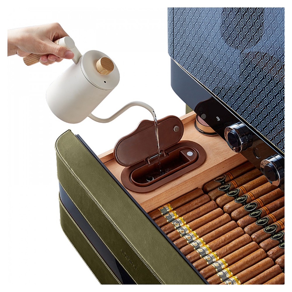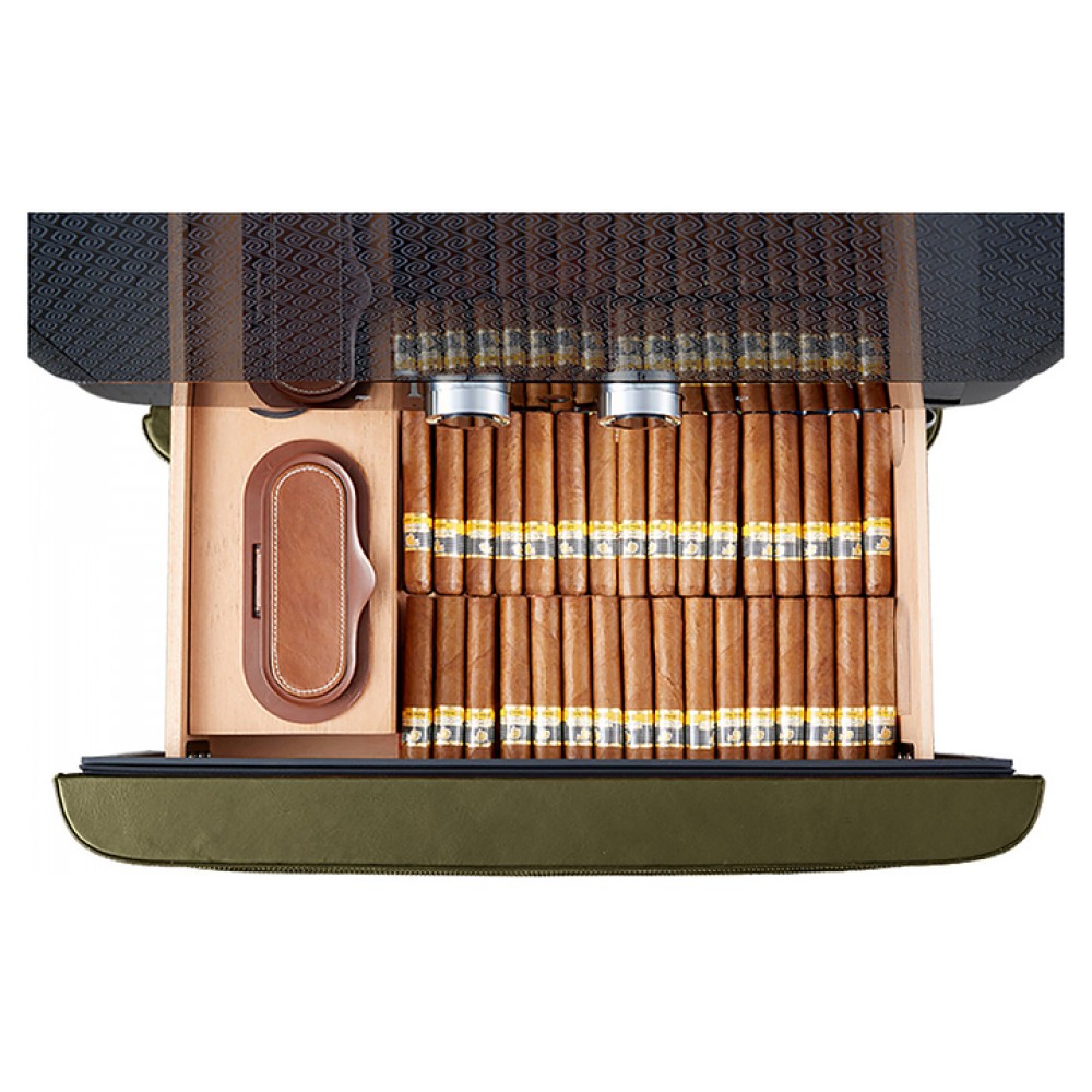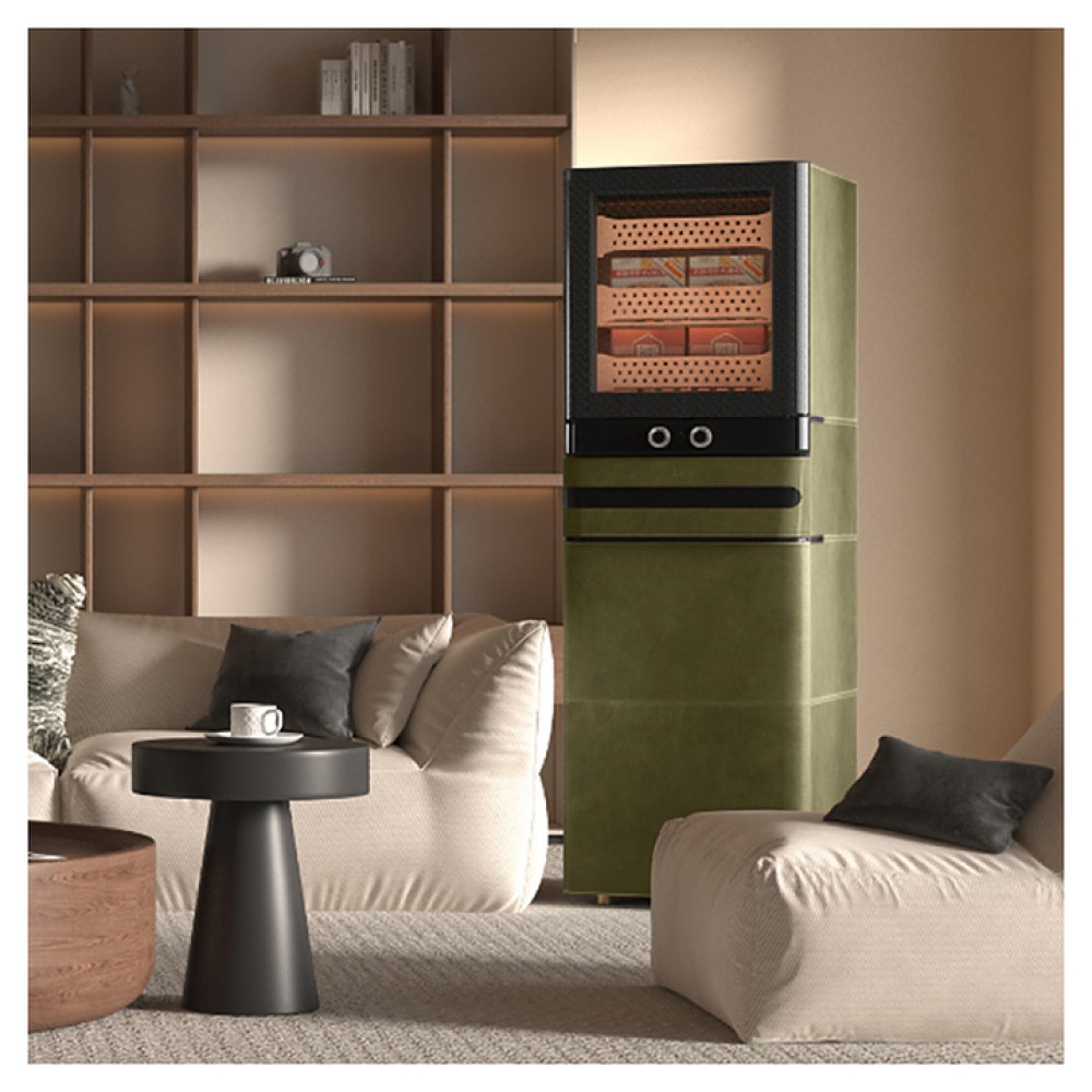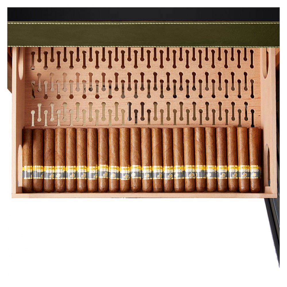 Шкаф Afidano L6 предназначен для хранения в оптимальных условиях и демонстрации сигар в специализированных магазинах, гостиницах, складских помещениях и домашних условиях. Модель оснащена 1 температурной зоной, 2 дверьми, 8 выдвижными ящиками, открытием отпечатком пальца, сенсорной панелью управления, утопленной ручкой, электронным термостатом и регулируемыми ножками. Цифровой гигрометр и внутренняя подсветка упрощают мониторинг и обзор содержимого. Корпус выполнен из стали, обшитой кожей, внутренняя отделка и ящики - из испанского кедра.