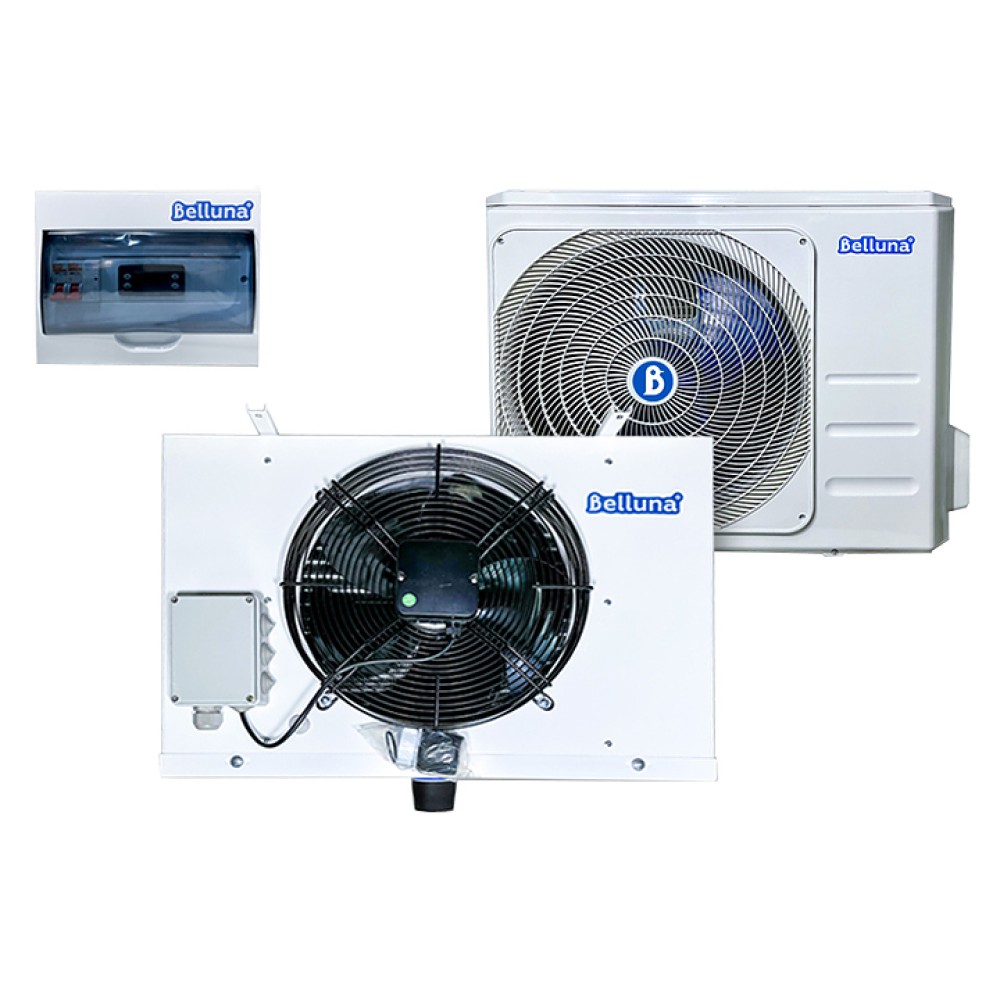 Холодильная сплит-система Belluna U205 серии Универсал предназначена для поддержания необходимого температурного режима в холодильных камерах на предприятиях пищевой промышленности, общественного питания и торговли. Холодильная машина состоит из внутреннего блока-воздухоохладителя и наружного блока. Для работы сплит-системы толщина пенополиуретановых панелей в холодильной камере должна быть не менее 80 мм.