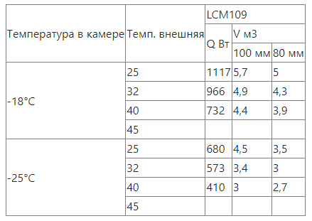 Сплит-системы на объем холодильных камер подобраны при обязательном соблюдении следующих условий эксплуатации: