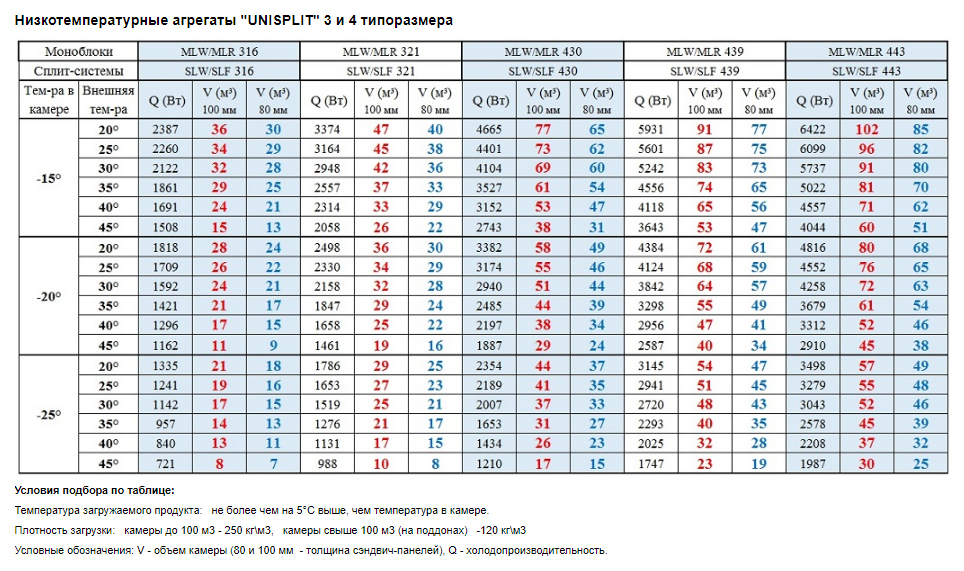 | Объем холодильной камеры | от 23 до 91 м³ |