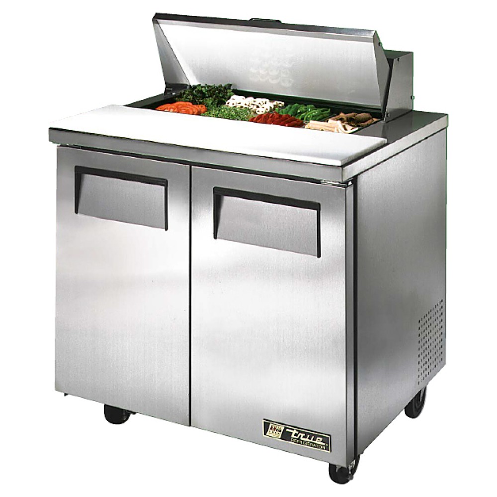 Стол для салатов True TSSU-36-08 используется на предприятиях общественного питания и торговли для хранения и обработки ингредиентов, используемых для приготовления пиццы, сэндвичей, салатов и других блюд, а также для охлаждения и кратковременного хранения скоропортящихся продуктов и напитков. Модель совмещает в себе рабочую поверхность и охлаждаемый объем, что значительно упрощает работу повара, так как все необходимые компоненты всегда находятся под рукой. Передняя, верхняя и боковые наружные части выполнены из нержавеющей стали, задняя наружная часть - из подходящего по цвету алюминия, дно стола - из нержавеющей стали серии 300, остальные внутренние части - из белого алюминия, одобренного NSF, двигатель вентилятора испарителя - из чугуна.