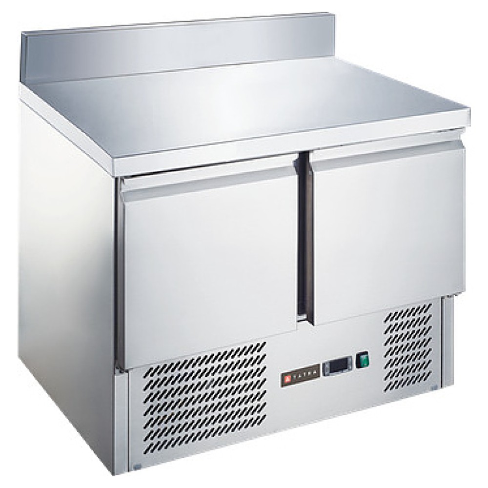 Холодильный стол Tatra TRTGNL2 TN SB предназначен для хранения предварительно охлажденных мясных и рыбных полуфабрикатов, заготовок для салатов, молочной продукции, напитков, а также раскатки теста и обработки пищевых продуктов на предприятиях общественного питания и торговли. Модель оснащена встроенным компрессорным холодильным агрегатом с нижним расположением, расположенными в нижней части фронтальной стенки электронным контроллером с цифровым дисплеем индикации, столешницей с задним бортом, холодильной камерой с 2 секциями, каждая секция оснащена распашной дверью. Корпус выполнен из высококачественной нержавеющей стали.