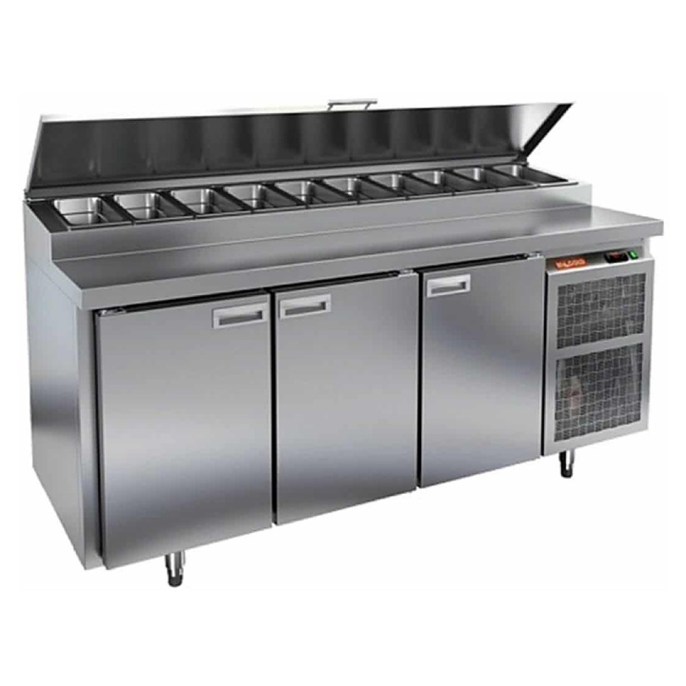 Стол для пиццы HICOLD PZ2-222/GN используется на предприятиях общественного питания и торговли для раскатки теста и обработки ингредиентов, используемых для приготовления пиццы, салатов и других блюд, а также для охлаждения и кратковременного хранения скоропортящихся продуктов и напитков. Модель совмещает в себе рабочую поверхность и охлаждаемый объем, что значительно упрощает работу повара, так как все необходимые компоненты всегда находятся под рукой. Корпус и столешница выполнены из нержавеющей стали.