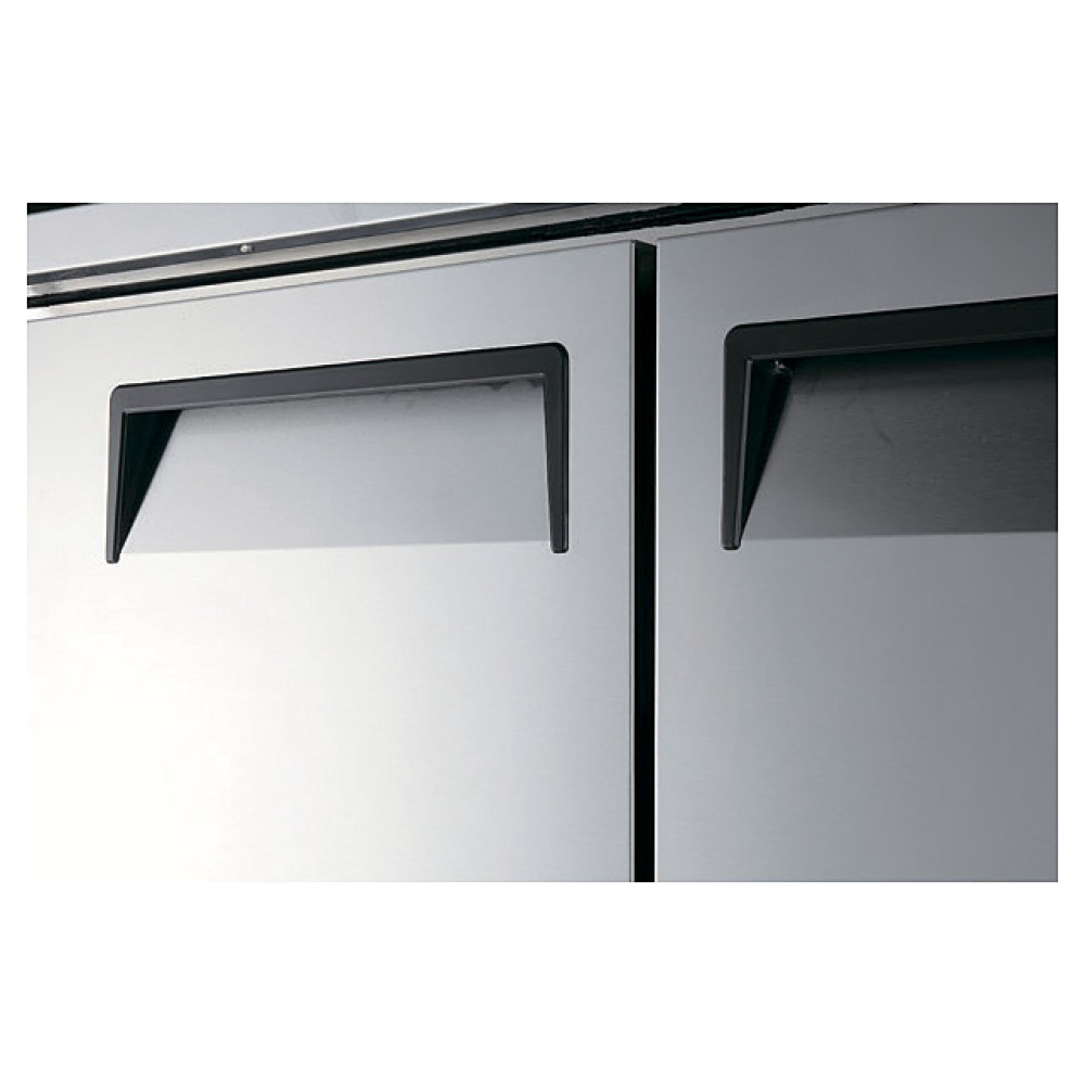 Стол для пиццы Turbo air CTPR-67 состоит из разделочной доски, на которой можно обрабатывать ингредиенты, и камеры, предназначенной для охлаждения и кратковременного хранения продуктов для приготовления пиццы на предприятиях пищевой промышленности, общественного питания и торговли. Модель оснащена 4 полками и 4 колесами фронтальными со стопорами. Корпус выполнен из нержавеющей стали (гальванизированная сталь на оборотной стороне и внизу) с применением пожаробезопасных стенок толщиной 60 мм, уплотнения - из АБС-пластика, который улучшает теплоизоляцию и не пропускает конденсат, пол - из нержавеющей стали с алюминиевыми вставками по бокам и сзади, двери собственной конструкции оснащены петлями из высококачественной нержавеющей стали, разделочная доска - из полиэтилена низкой плотности высокого давления.