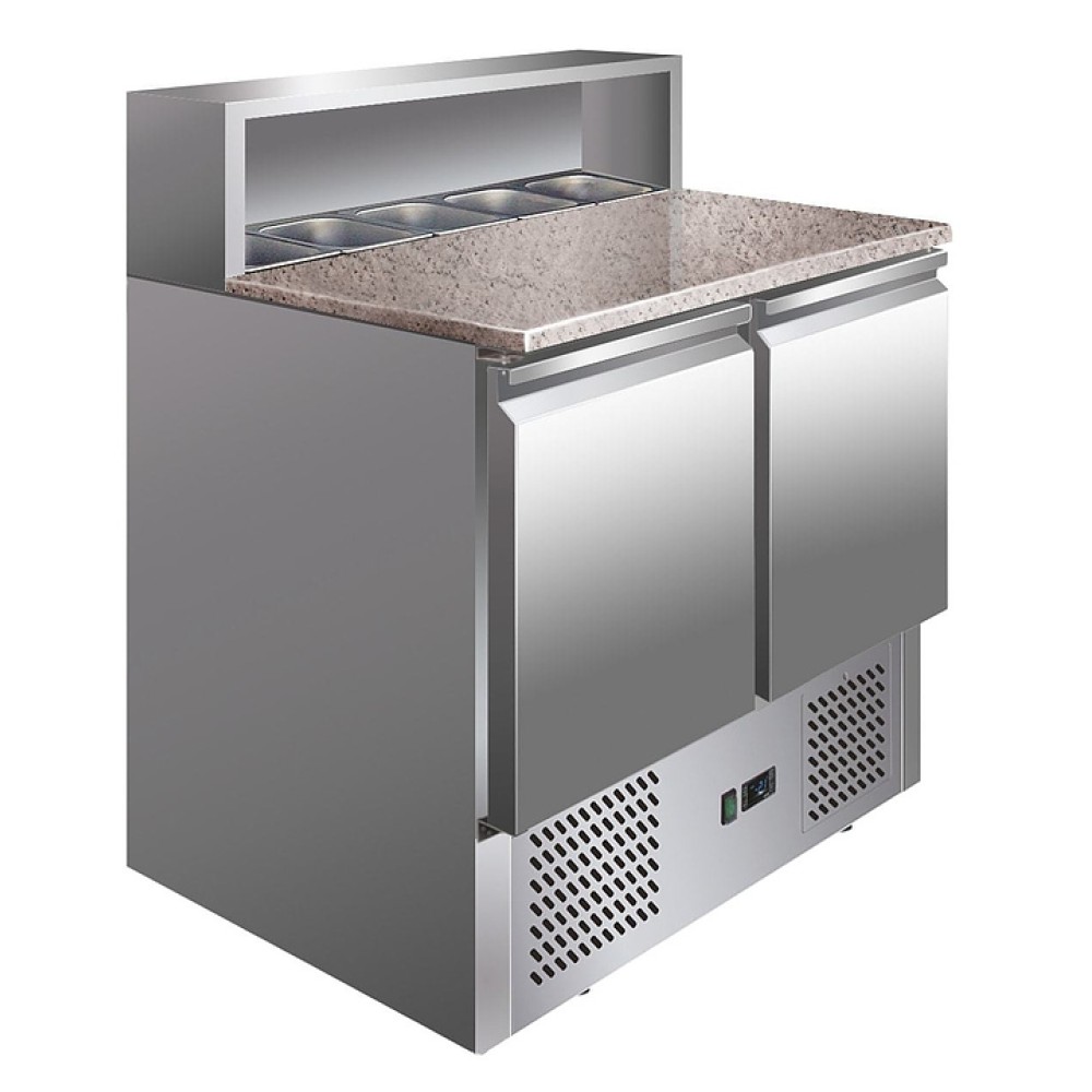 Стол для пиццы VIATTO PS900 SEC предназначен для охлаждения и кратковременного хранения продуктов, напитков и готовых блюд, а также для раскатки теста и обработки ингредиентов для приготовления пиццы на предприятиях общественного питания и торговли. Модель оснащена статической системой охлаждения и автоматической оттайкой. Корпус выполнен из нержавеющей стали, внутренняя камера - из алюминия, столешница - из гранита.