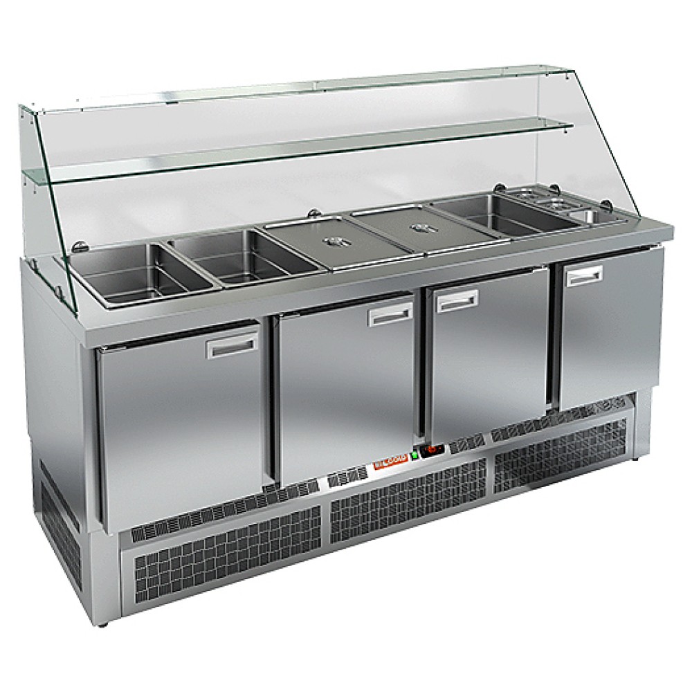 Стол для салатов HICOLD SLE3-1111GN используется на предприятиях общественного питания и торговли для охлаждения и кратковременного хранения ингредиентов, используемых для приготовления салатов, закусок и сэндвичей, а также других скоропортящихся продуктов и напитков. Корпус и столешница выполнены из нержавеющей стали.