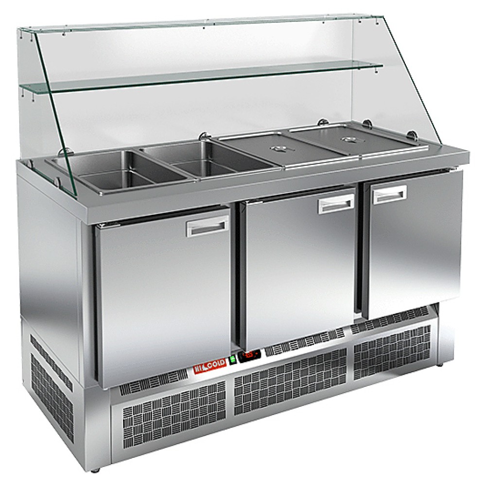 Стол для салатов HICOLD SLE3-111GN используется на предприятиях общественного питания и торговли для охлаждения и кратковременного хранения ингредиентов, используемых для приготовления салатов, закусок и сэндвичей, а также других скоропортящихся продуктов и напитков. Корпус и столешница выполнены из нержавеющей стали.