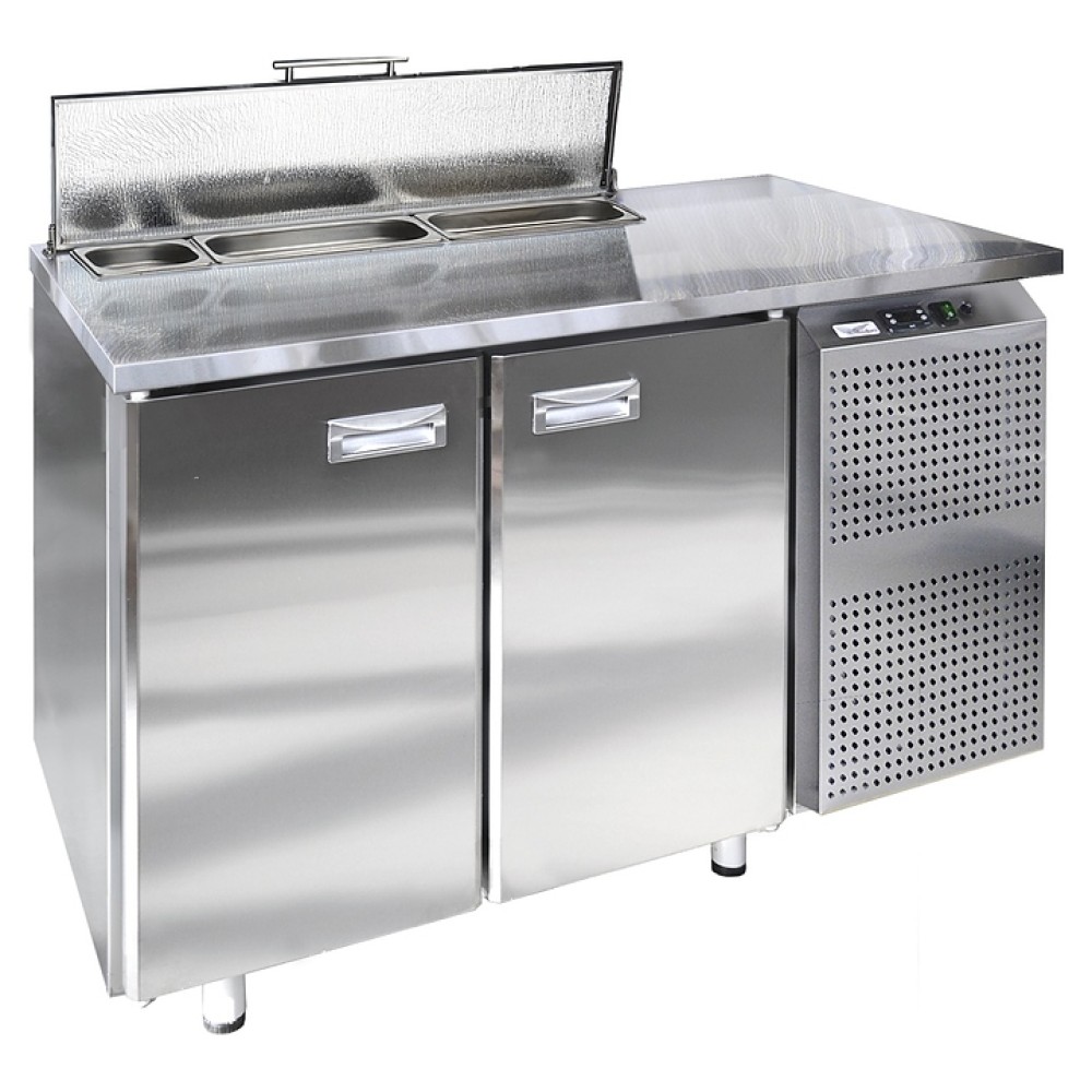 Холодильный стол Finist СХСс-700-2 предназначен для сохранения свежести ингредиентов для холодных закусок и салатов на предприятиях общественного питания и торговли. Модель оснащена расположенным сбоку агрегатным отсеком, столешницей с задним бортом и отсеком под гастроемкости с крышкой, 2 холодильными камерами с распашными дверцами, устойчивыми ножками с подпятниками, кабелем питания с евровилкой и кнопочной панелью управления с цифровым дисплеем. Цельнозаливной корпус выполнен из высококачественной нержавеющей стали.