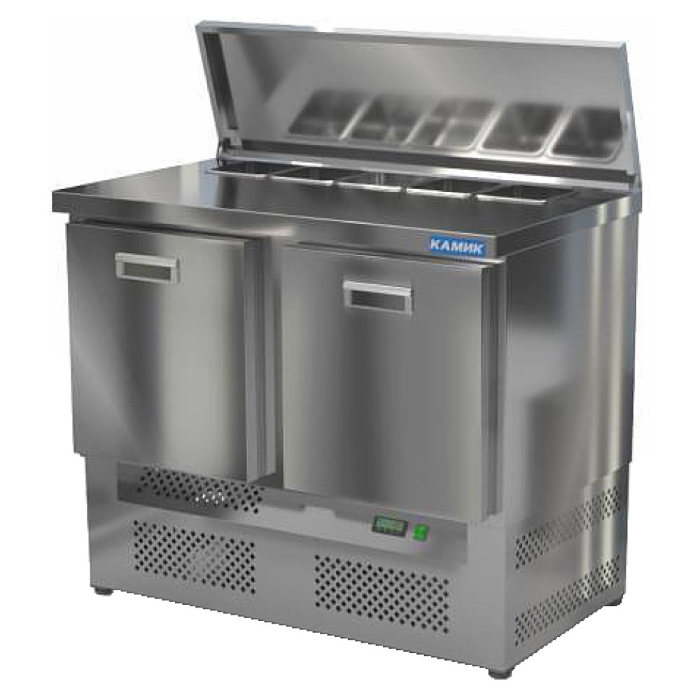 Холодильный стол КАМИК СОН-021086Н используется на предприятиях общественного питания и торговли для охлаждения, демонстрации и кратковременного хранения ингредиентов для приготовления салатов, напитков и готовых блюд. Конструкция разделена на секции, каждая секция с дверью оборудована сетчатой полкой и парой направляющих. Корпус выполнен из нержавеющей стали AISI 430 толщиной 1 мм, столешница - из нержавеющей стали AISI 304 толщиной 1,5 мм.