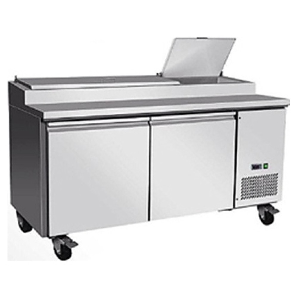 Холодильный стол Koreco TPP/67 предназначен для обработки ингридиентов для салатов и кратковременного хранения предварительно охлажденных пищевых продуктов на предприятиях общественного питания и торговли. Модель оснащена расположенным справа встроенным холодильным агрегатом, 2 холодильными секциями с распашными дверьми, салат-баром с 2 откидными крышками и электронным блоком управления. Корпус выполнен из высококачественной нержавеющей стали марки AISI201, полка – из металла с полимерным покрытием.