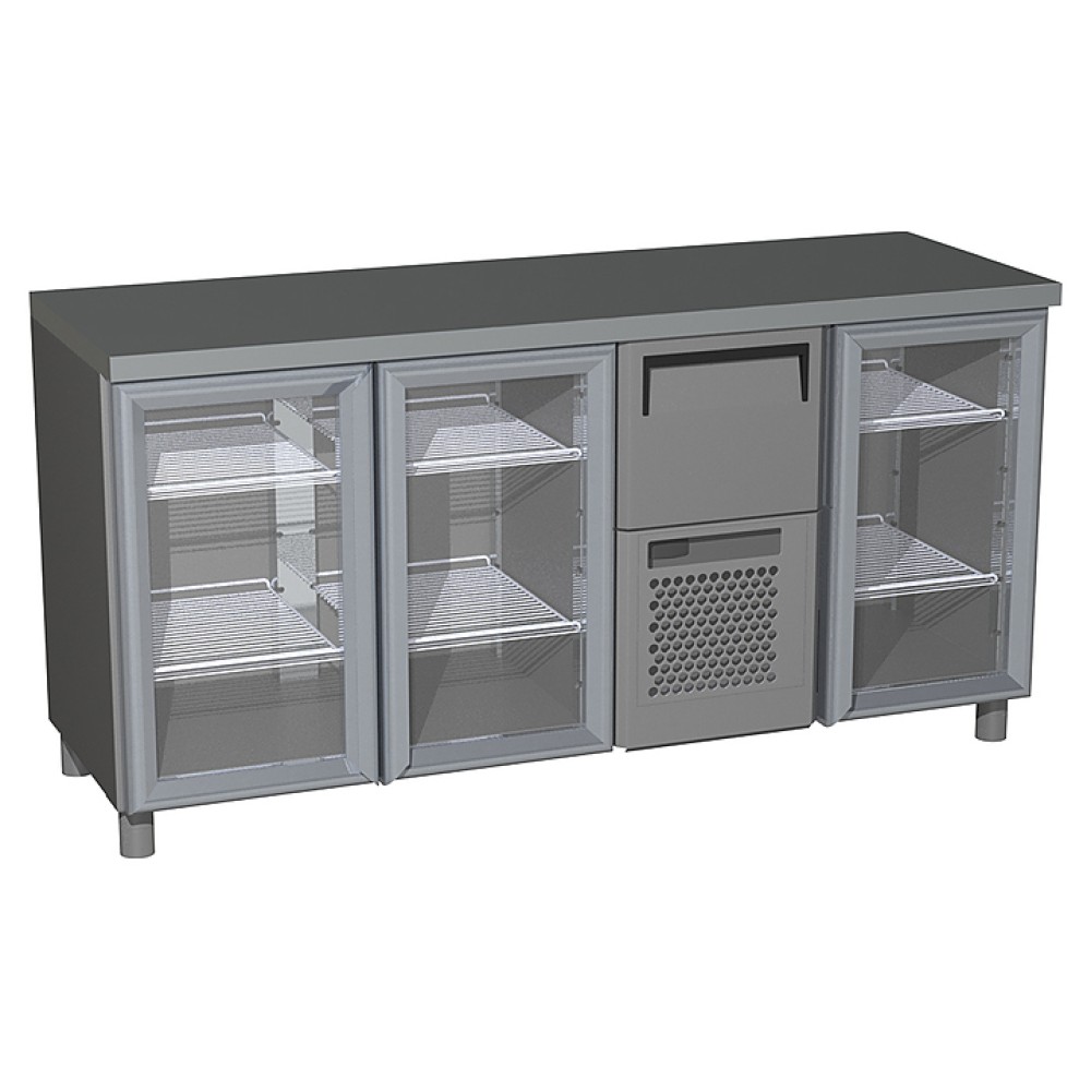 Холодильный стол Сarboma T57 M3-1-G 0430-1 (BAR-360С) предназначен для раскатки теста, обработки ингредиентов для приготовления блюд, охлаждения и кратковременного хранения скоропортящихся продуктов и напитков на предприятиях общественного питания и торговли. Модель оснащена охлаждаемым ящиком и регулируемыми ножками высотой от 90 до 110 мм. Цельнозаливной корпус выполнен из нержавеющей стали, дверцы - из стекла.