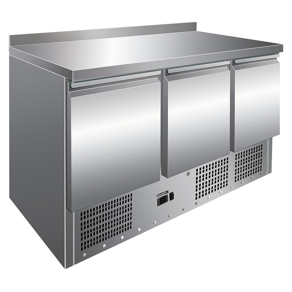 Холодильный стол Cooleq S903 TOP S/S предназначен для хранения пищевых продуктов и напитков, а также приготовления блюд на предприятиях общественного питания, торговли и пищевых производствах. Модель оснащена агрегатным отсеком снизу, столешницей с бортом, 3 холодильными камерами с дверьми, 1 полкой и 1 парой направляющих под GN 1/1 в каждой секции. Столешница служит рабочей поверхностью, что экономит пространство. Корпус выполнен из нержавеющей стали, отличающейся прочностью и долговечностью, не впитывает загрязнения и легко очищается.