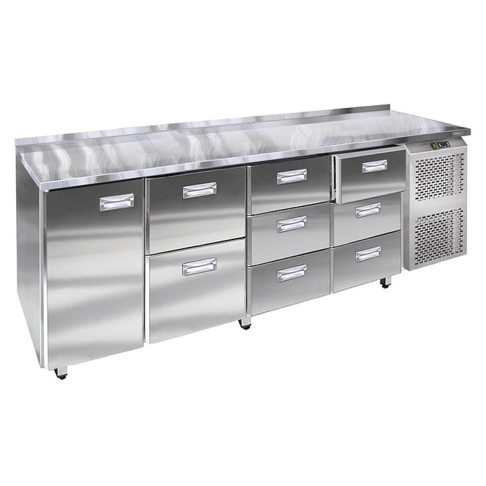 Холодильный стол Finist СХС-700-1/8 предназначен для хранения пищевых продуктов и напитков на предприятиях общественного питания, торговли и пищевых производствах. Модель оснащена распашной дверью и 8 выдвижными ящиками с доводчиками, обеспечивающими гарантированное закрытие и поддержание заданной температуры в рабочем объеме стола. Передняя панель моторного отсека имеет большую площадь перфорации, что позволяет обеспечить холодильному агрегату поступление воздуха для охлаждения. Изделие выполнено из высококачественной пищевой нержавеющей стали, которая отличается прочностью и долговечностью, не впитывает загрязнения и легко очищается.