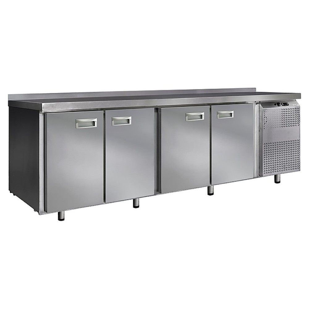 Холодильный стол Finist СХС-700-4 предназначен для хранения предварительно охлажденных мясных и рыбных полуфабрикатов, заготовок для салатов, молочной продукции, охлажденных напитков и других пищевых продуктов на предприятиях общественного питания и торговли. Модель оснащена расположенным сбоку агрегатным отсеком, столешницей с задним бортом, 4 холодильными камерами с распашными дверцами, устойчивыми ножками с подпятниками, кабелем питания с евровилкой и кнопочной панелью управления с цифровым дисплеем. Корпус выполнен из высококачественной нержавеющей стали.
