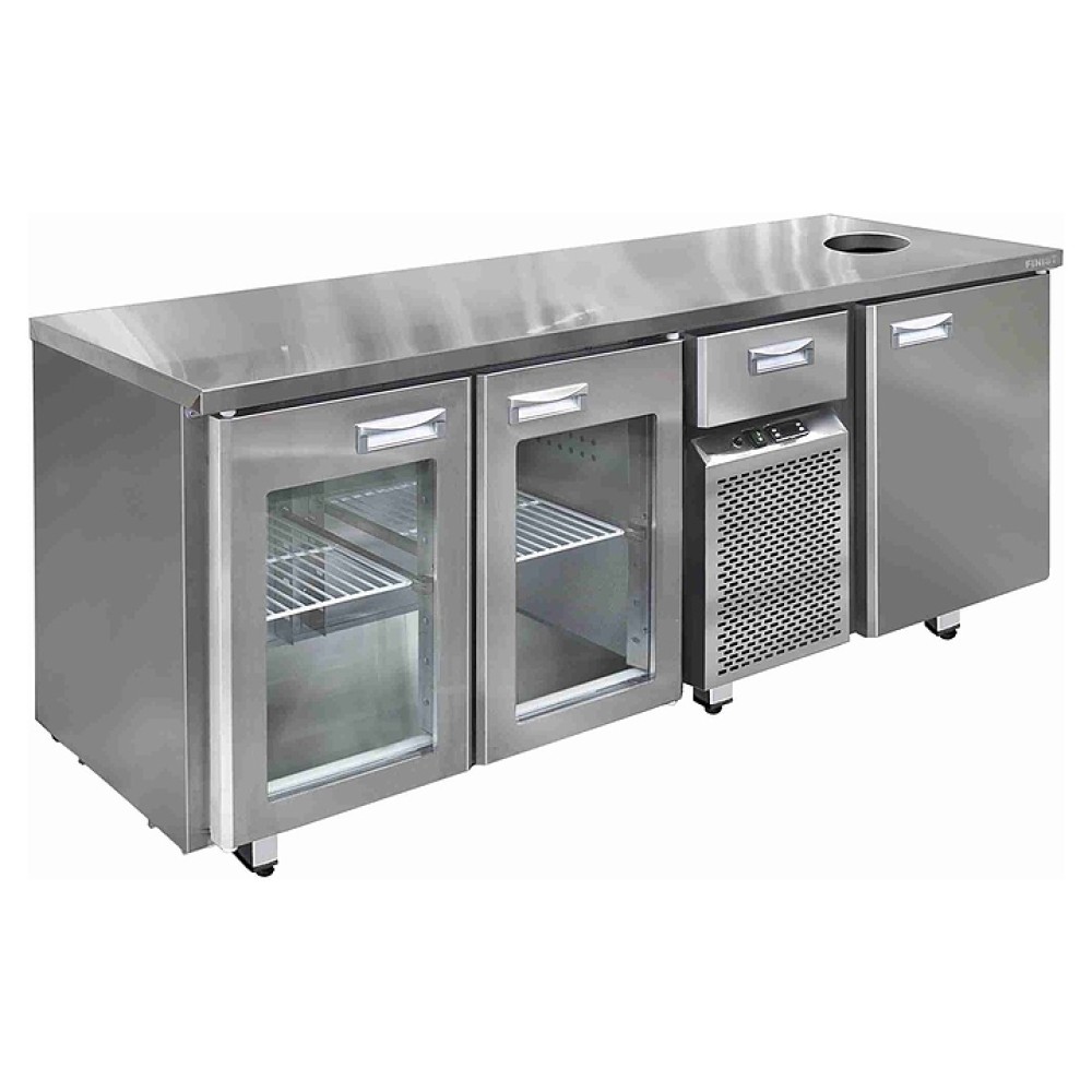 Холодильный стол Finist СХСns-700-3 предназначен для хранения предварительно охлажденных пищевых продуктов и напитков, а также размещения кофемашины и аксессуаров для приготовления кофе на предприятиях общественного питания и торговли. Модель оснащена встроенным холодильным агрегатом с боковым расположением, столешницей, камерой с 3 секциями с распашными дверьми: 2 среднетемпературными и 1 нейтральной с отверстием в столешнице для сбора отходов, устойчивыми опорами с подпятниками, кабелем питания с евровилкой и панелью управления. Корпус за исключением задней стенки выполнен из высококачественной нержавеющей стали.