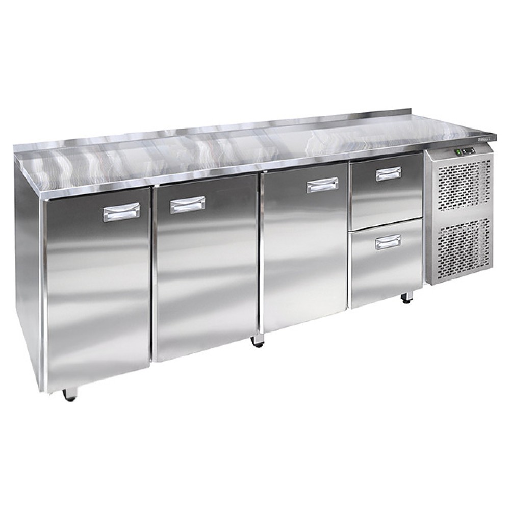 Холодильный стол Finist УХС-600-3/2 предназначен для хранения предварительно охлажденных мясных и рыбных полуфабрикатов, заготовок для салатов, молочной продукции, охлажденных напитков и других пищевых продуктов на предприятиях общественного питания и торговли. Модель оснащена расположенным сбоку агрегатным отсеком, 3 секциями с распашными дверьми, секцией с 2 выдвижными ящиками с доводчиками, устойчивыми опорами, кабелем питания и панелью управления с цифровым дисплеем. Корпус выполнен из высококачественной нержавеющей стали.
