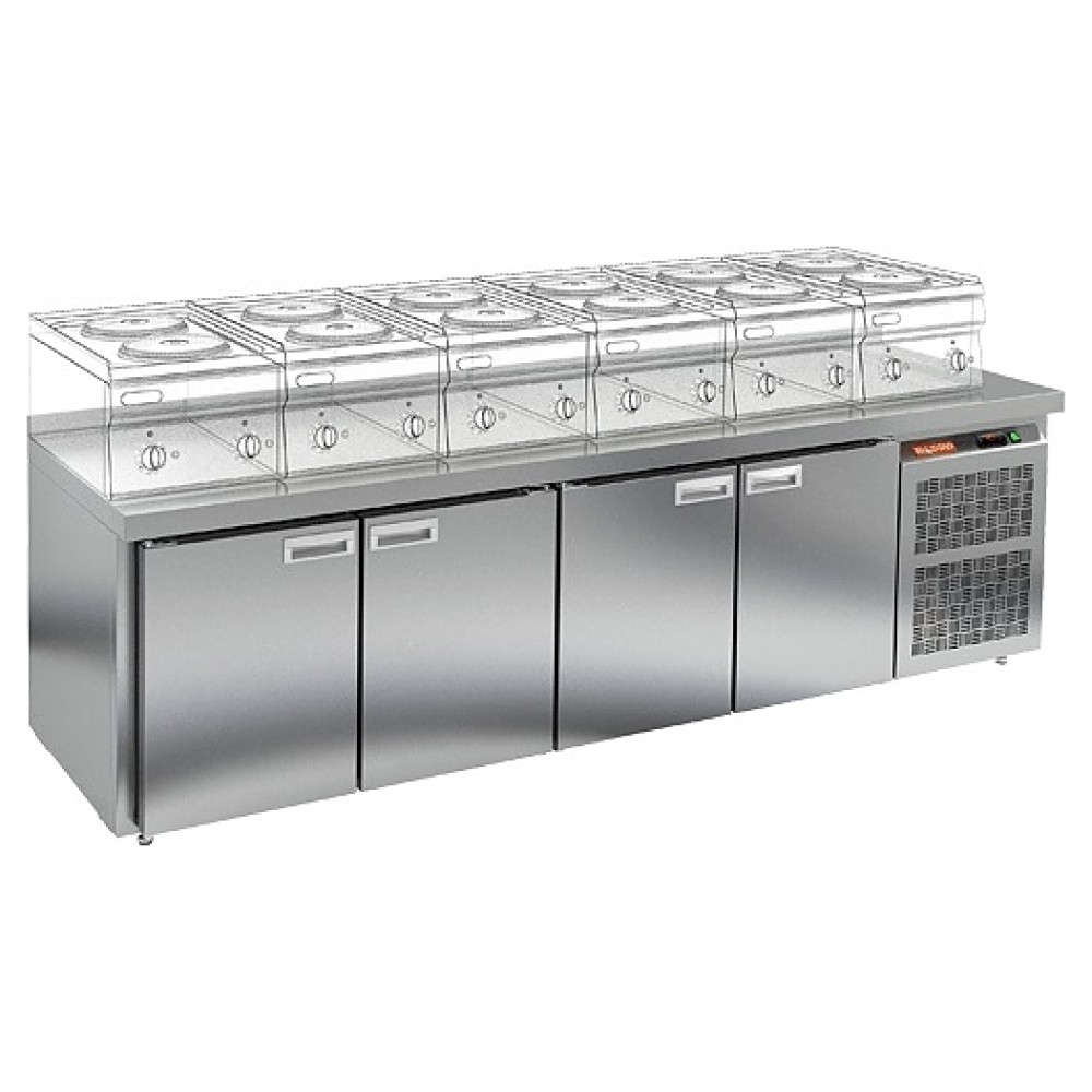 Холодильный стол HICOLD GN 1111 BR2 TN LT предназначен для хранения предварительно охлажденных пищевых продуктов, обработки ингредиентов в процессе приготовления блюд, а также размещения теплового оборудования на предприятиях общественного питания и торговли. Модель оснащена встроенным компрессорным холодильным агрегатом с боковым расположением, электронной панелью управления, столешницей c бортом и холодильной камерой с 4 секциями с распашной дверью в каждой. Корпус и столешница выполнены из нержавеющей стали.