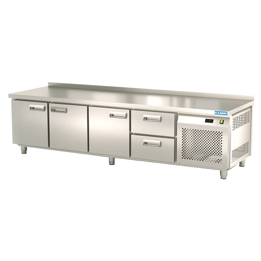 Холодильный стол КАМИК СО-Т-32236 используется на предприятиях общественного питания и торговли для охлаждения и хранения продуктов, напитков и готовых блюд, а также для установки теплового оборудования на него. Конструкция разделена на секции, каждая секция с дверью оснащена полкой сетчатой и парой направляющих. Корпус выполнен из нержавеющей стали.