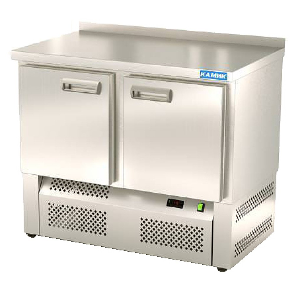 Холодильный стол КАМИК СОБН-02107 используется на предприятиях общественного питания и торговли для охлаждения и хранения продуктов, напитков и готовых блюд. Конструкция разделена на секции, каждая секция с дверью оснащена полкой сетчатой и парой направляющих. Корпус выполнен из нержавеющей стали AISI 430 толщиной 1 мм, столешница - из нержавеющей стали AISI 304 толщиной 1,5 мм.