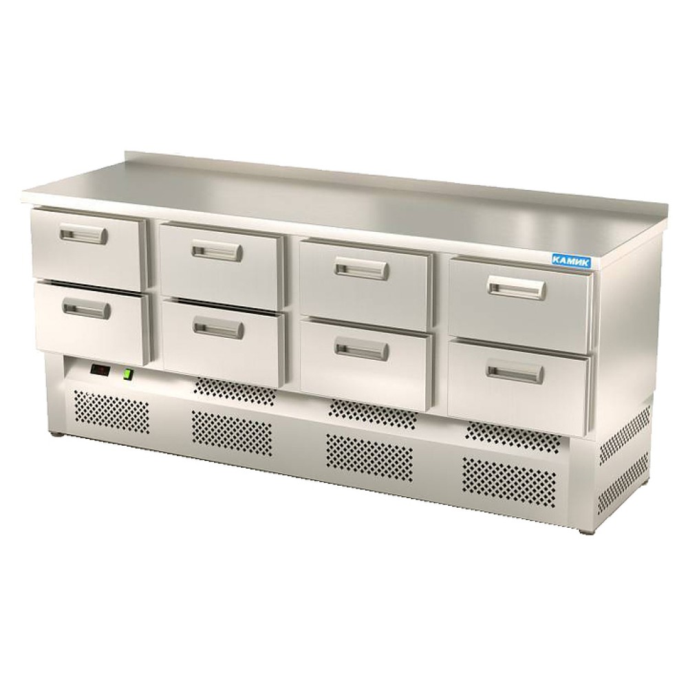 Холодильный стол КАМИК СОБН-08208 используется на предприятиях общественного питания и торговли для охлаждения и хранения продуктов, напитков и готовых блюд. Корпус выполнен из нержавеющей стали AISI 430 толщиной 1 мм, столешница - из нержавеющей стали AISI 304 толщиной 1,5 мм.