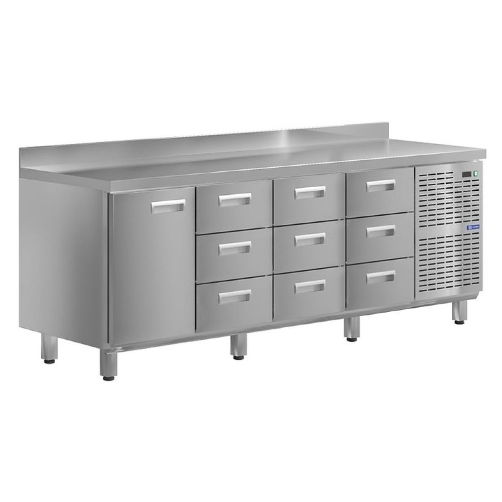 Холодильный стол KAYMAN KСХ-1333/70 предназначен для охлаждения, хранения и обработки пищевых продуктов в ресторанах, барах, кафе, столовых, на профессиональных кухнях и пищевых производствах. Конструкция дверей позволяет осуществлять быструю загрузку и выгрузку продуктов, на прочной столешнице можно резать, раскатывать и отбивать полуфабрикаты. Модель оснащена дверью и 9 ящиками. Изделие выполнено из высококачественной нержавеющей стали, отличающейся прочностью и долговечностью.