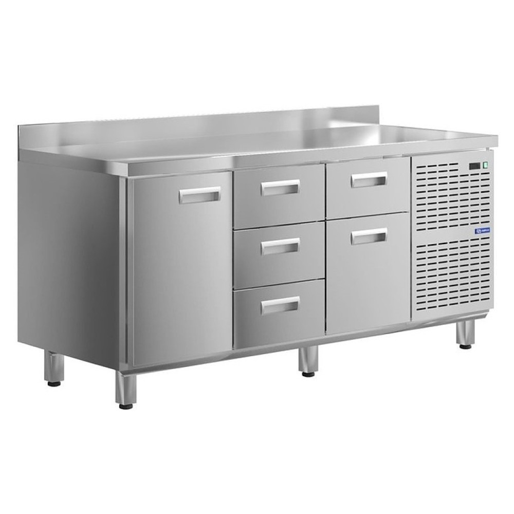 Холодильный стол KAYMAN KСХ-134/70 предназначен для охлаждения, хранения и обработки пищевых продуктов в ресторанах, барах, кафе, столовых, на профессиональных кухнях и пищевых производствах. Конструкция дверей позволяет осуществлять быструю загрузку и выгрузку продуктов, на прочной столешнице можно резать, раскатывать и отбивать полуфабрикаты. Модель оснащена дверью и 5 ящиками. Изделие выполнено из высококачественной нержавеющей стали, отличающейся прочностью и долговечностью.