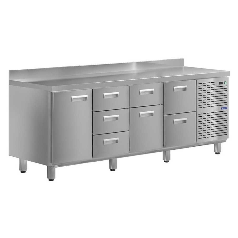 Холодильный стол KAYMAN KСХ-1342/70 предназначен для охлаждения, хранения и обработки пищевых продуктов в ресторанах, барах, кафе, столовых, на профессиональных кухнях и пищевых производствах. Конструкция дверей позволяет осуществлять быструю загрузку и выгрузку продуктов, на прочной столешнице можно резать, раскатывать и отбивать полуфабрикаты. Модель оснащена дверью и 5 ящиками. Изделие выполнено из высококачественной нержавеющей стали, отличающейся прочностью и долговечностью.