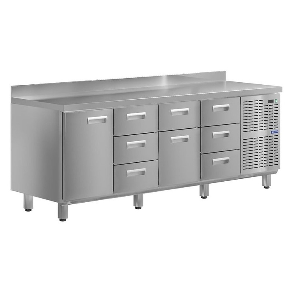 Холодильный стол KAYMAN KСХ-1343/70 предназначен для охлаждения, хранения и обработки пищевых продуктов в ресторанах, барах, кафе, столовых, на профессиональных кухнях и пищевых производствах. Конструкция дверей позволяет осуществлять быструю загрузку и выгрузку продуктов, на прочной столешнице можно резать, раскатывать и отбивать полуфабрикаты. Модель оснащена дверью и 8 ящиками. Изделие выполнено из высококачественной нержавеющей стали, отличающейся прочностью и долговечностью.