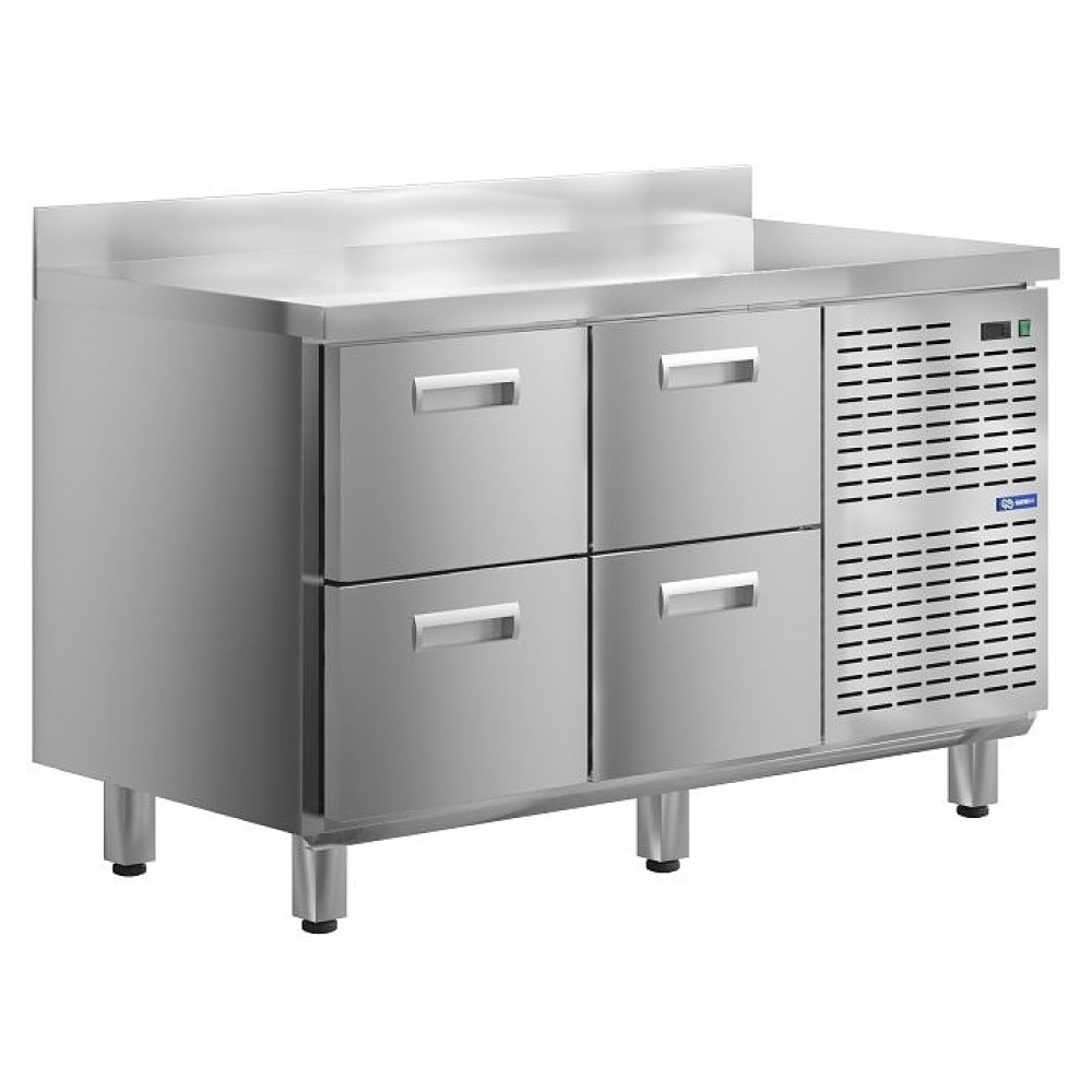 Холодильный стол KAYMAN КСХ-22/60 предназначен для охлаждения, хранения и обработки пищевых продуктов в ресторанах, барах, кафе, столовых, на профессиональных кухнях и пищевых производствах. Модель оснащена 2 отсеками, в каждом из которых по 2 ящика, и бортом. Столешница выполнена из нержавеющей стали.