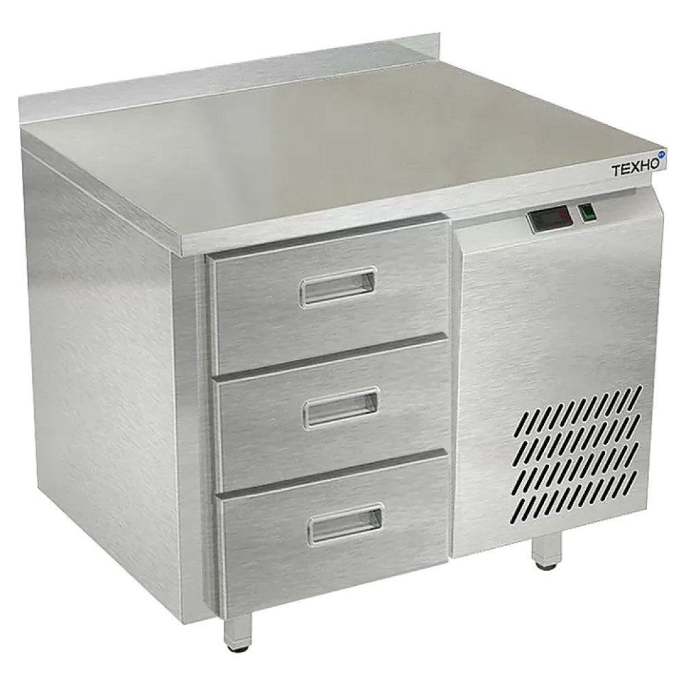 Холодильный стол Техно-ТТ СПБ/О-223/03-906 предназначен для раскатки теста, обработки, охлаждения и кратковременного хранения продуктов и напитков на предприятиях общественного питания и торговли. Модель оснащена 1 секцией с 3 ящиками, направляющими с доводчиками (Австрия), бортом и круглыми ножками, регулируемыми по высоте на 50 мм (Италия). Корпус выполнен из нержавеющей стали AISI 430, задняя стенка и дно - из оцинкованной стали.